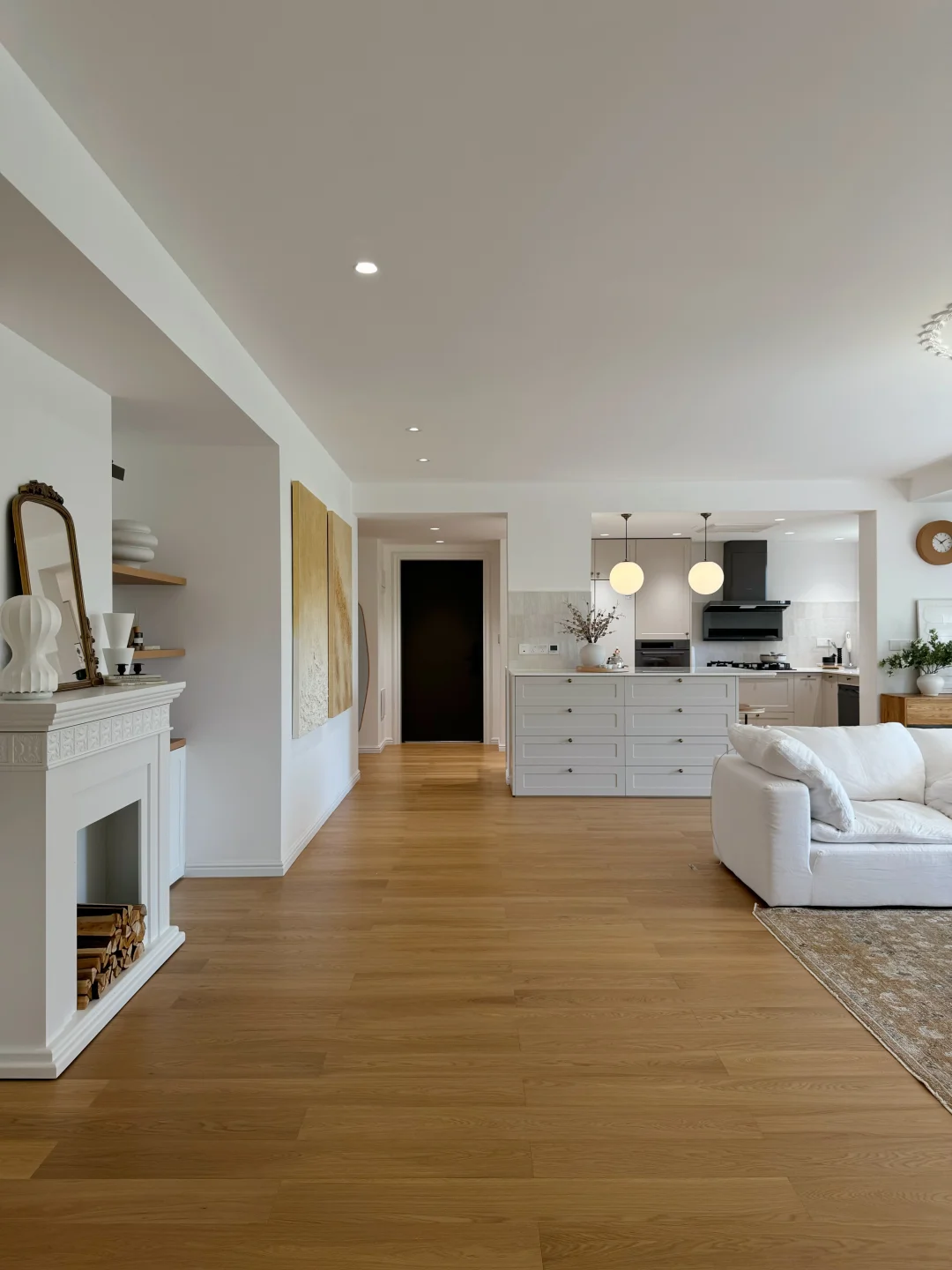 🍃原木色橡木地板通铺,好看又显大,地板选带天然结疤的,增添家居松弛感