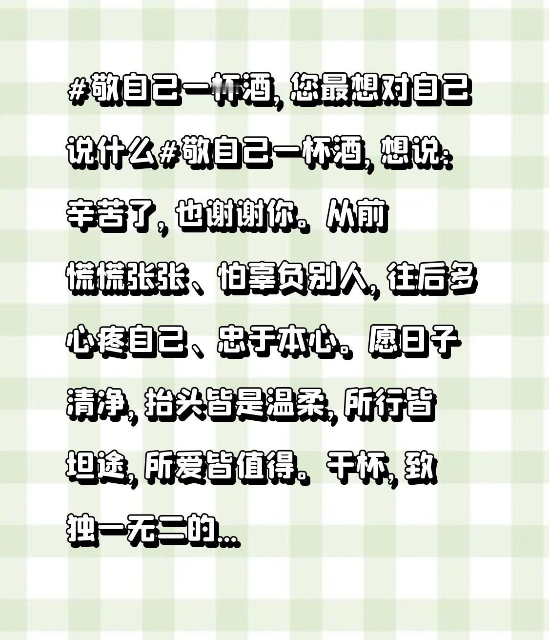 敬自己一杯酒,想说: 辛苦了,也谢谢你。 从前慌慌张张、怕辜负别人,往后多心疼自