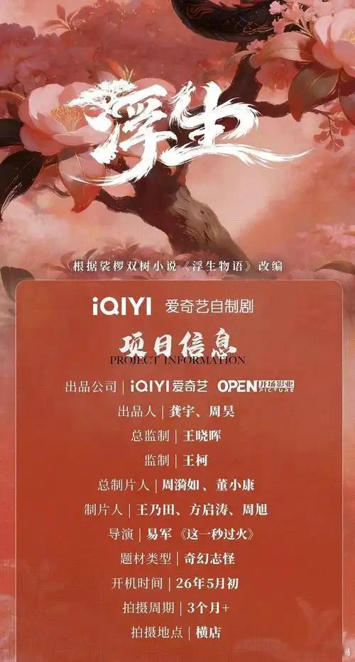 网传奇幻剧《浮生》筹备进度更新,预计最快5月初在横店正式开机,网传主演阵容锁定陈哲远、王楚然、程潇,高颜值组合+奇幻题材直接戳中期待!- 陈哲远:古装扮相俊朗灵动,能驾驭奇幻剧里亦正亦邪、层次丰富的男主设定,自带少年侠气- 王楚然:气质清冷又温柔,适配奇幻题材里仙系女主,氛围感和镜头表现力都很能打- 程潇:颜值出众+舞蹈功底加持,古装造型自带仙气,很贴合奇幻剧里的灵动女配人设奇幻题材自带仙侠宿命感,剧情大概率围绕人神羁绊、成长救赎展开,搭配横店实景拍摄,服化道和场景质感值得期待,坐等官方官宣开机实锤!