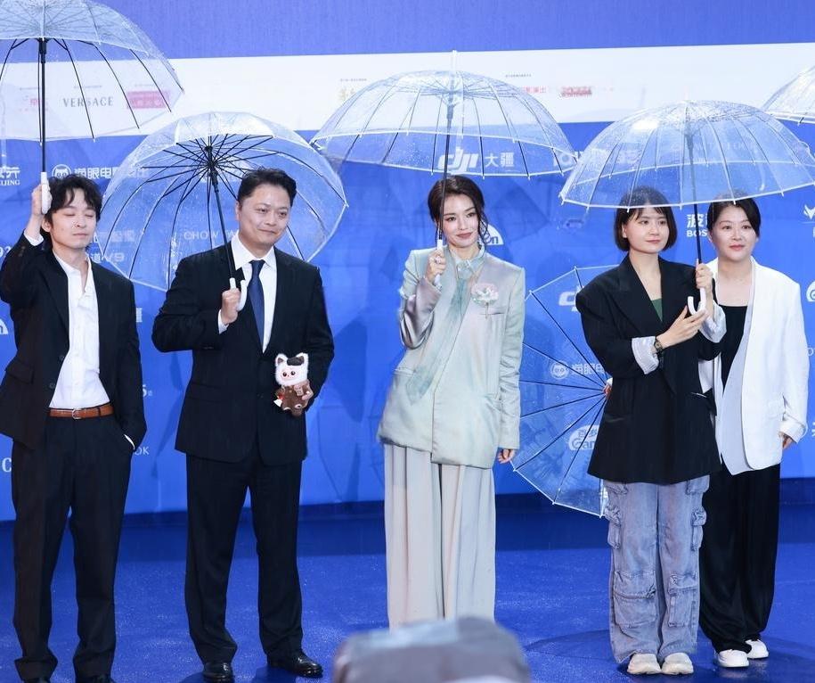 最机智的还是舒淇,选了烟青玉色阔腿裤套装,全程干净清爽,还透着一股春光明媚的气息。虽然都说“遇水则发”,但女明星们想在雨中红毯上出神图,还真不容易。
