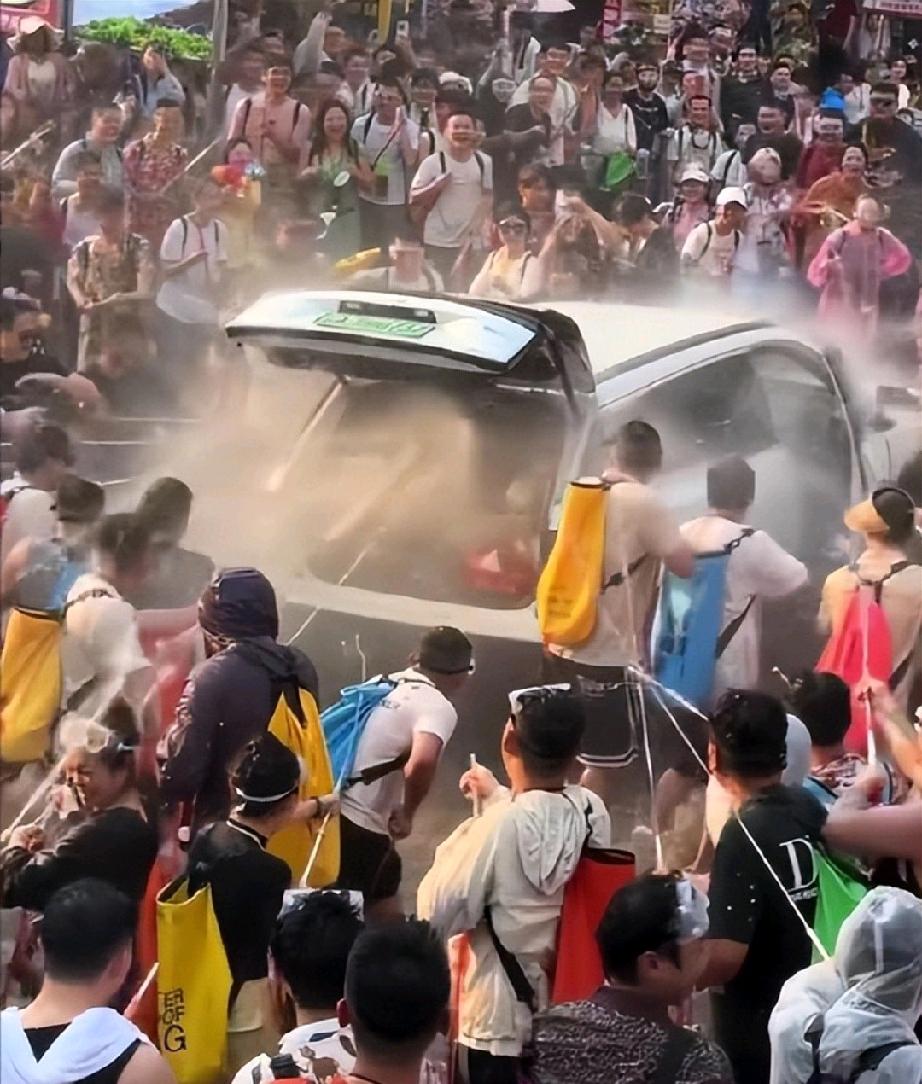 云南西双版纳,男子驾车带60岁的父母旅游,当车子行驶到泼水节核心路段时,一名男子突然冲过来,强行拉开车门、打开后尾箱,路上的行人见状,瞬间炸锅了,拿起水枪、脸盆、水管等,齐刷刷往车内泼水,男子气愤不已,大喊:“不要泼了”,可路人依然不管不顾,男子的父母全身湿透,车子也严重损毁。