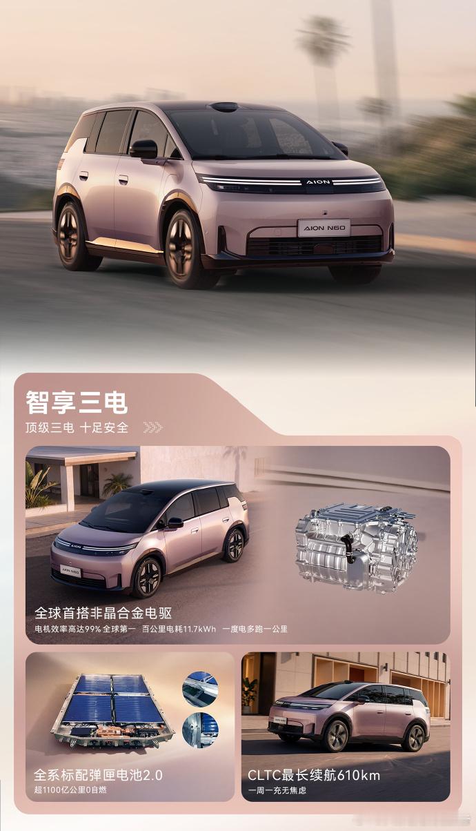 埃安N60预售开启11.58万起满配激光雷达智驾 SUV🔥这这这配置+这个价格???说是为年轻人准备的智驾好车,但是我觉得也很适合一些家庭的用车选择。空间宽敞,关键全系标配性价比还是比较高的。✅ 同级唯一激光雷达+4D 毫米波雷达,L4同源端到端大模型,智驾纽北全程0接管✅ 非晶合金电驱,百公里电耗11.7kWh,CLTC最高续航610km✅ 弹匣电池2.0,超1100亿公里0自燃,烧一赔三超安心✅ 副驾零重力座椅、前排通风加热按摩、豪车级五连杆全系标配✅ 75.3% 得房率大空间+2.38㎡全景天幕,舒适拉满下订599元享6重好礼,总价值1.5万,免费送充电桩+音响套件!