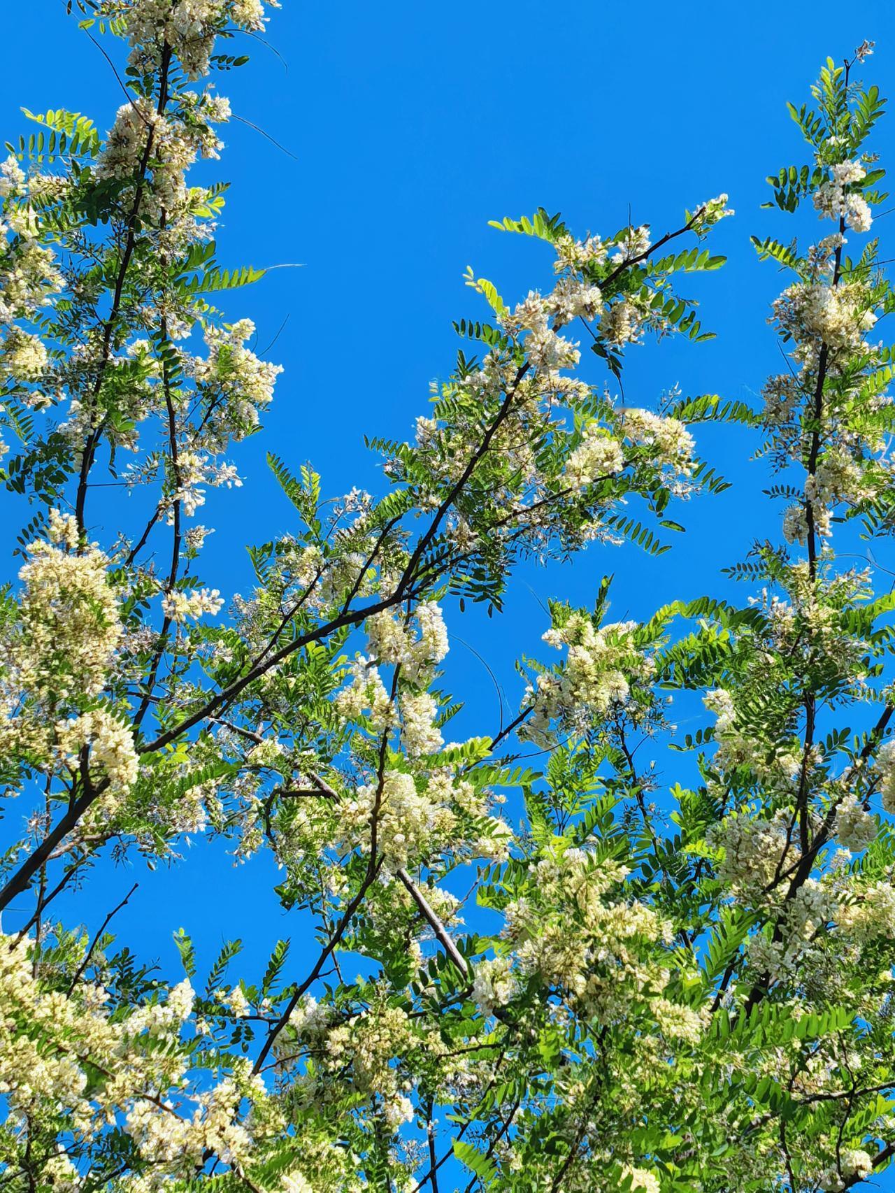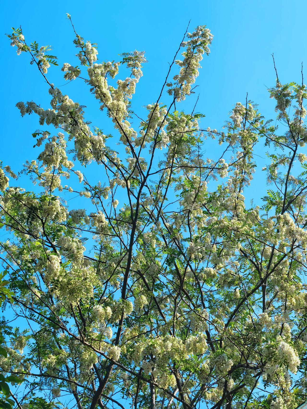 槐花咏 素蕊垂枝缀满庭, 风摇雪串暗香凝。 柔姿不与群芳竞, 淡韵偏随晚春兴。