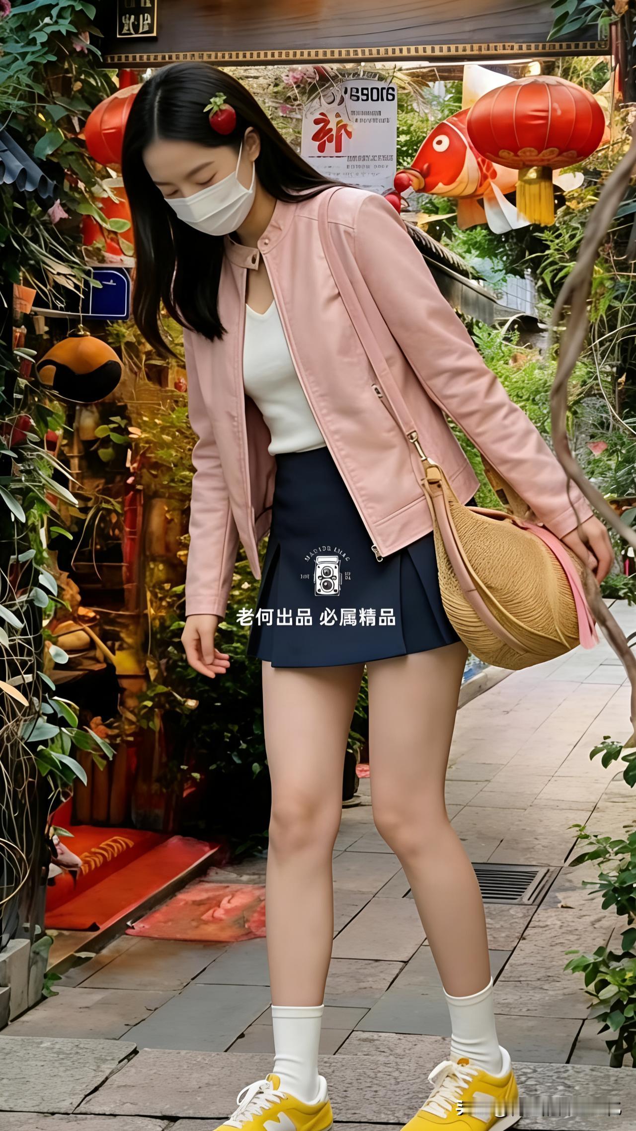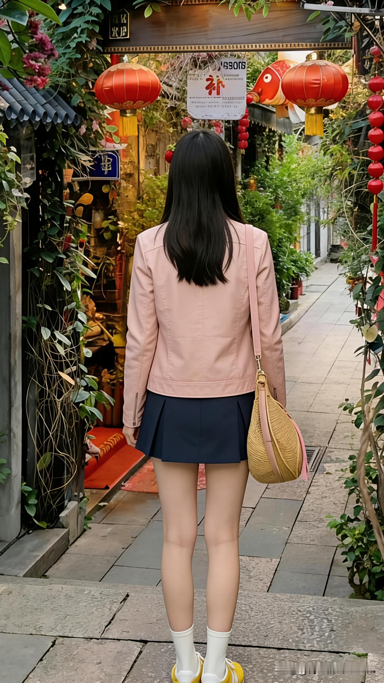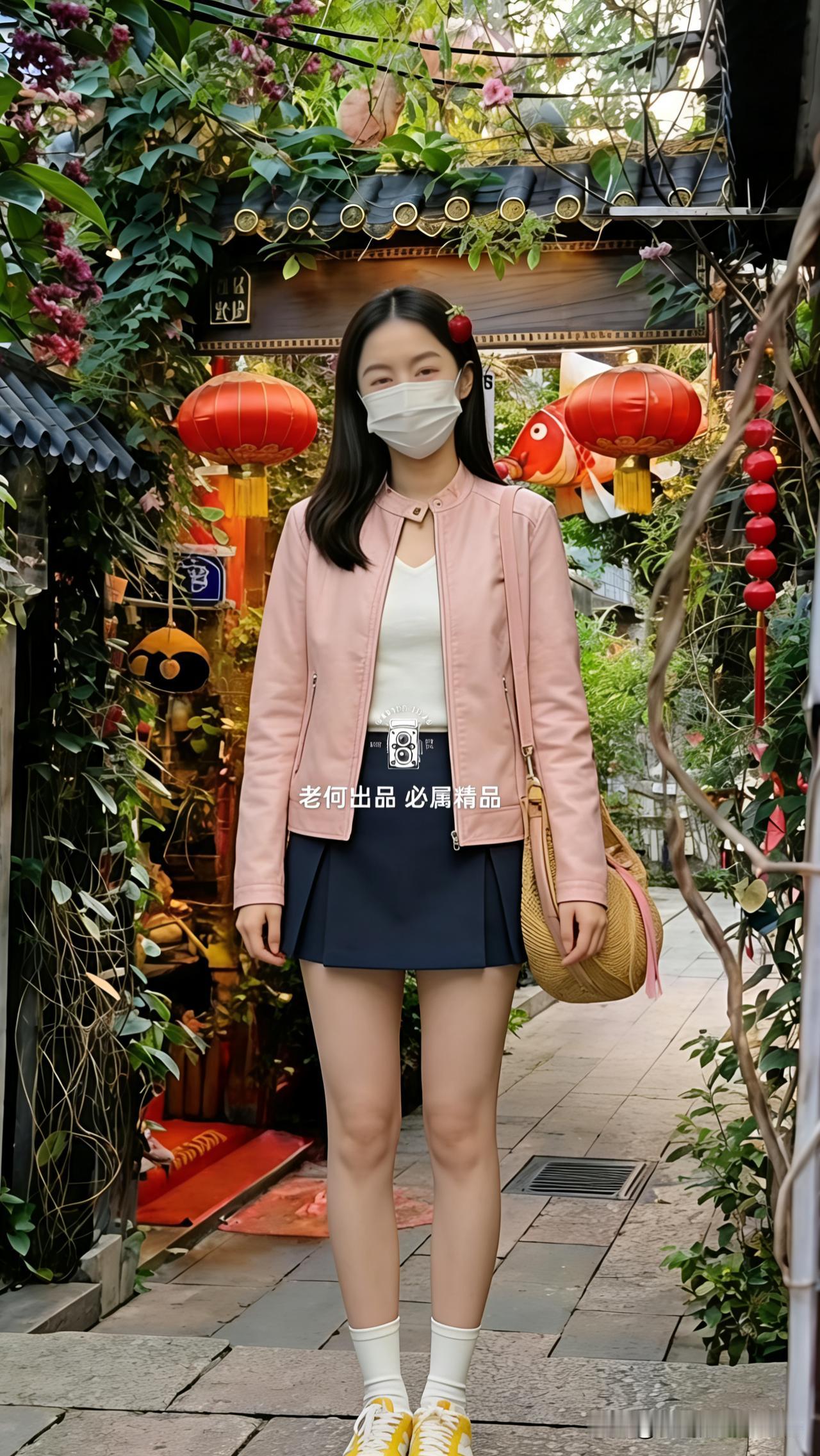 古巷灯笼下,她一身粉色短皮衣配深蓝百褶裙,再踩一双亮黄色运动鞋,刚一站定,整条街的目光都被她牢牢锁住。