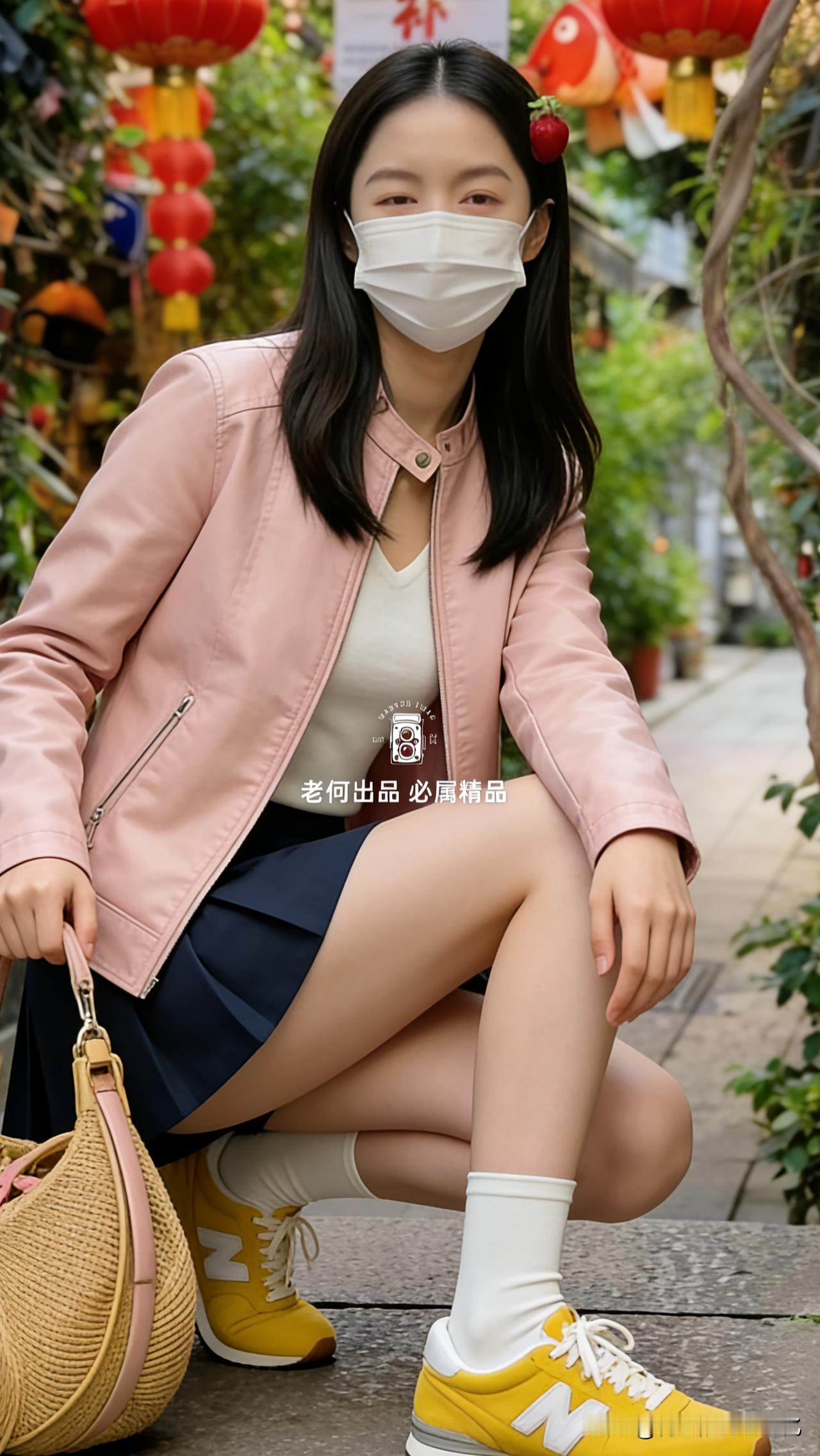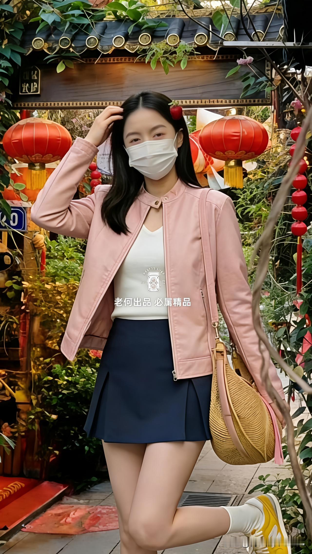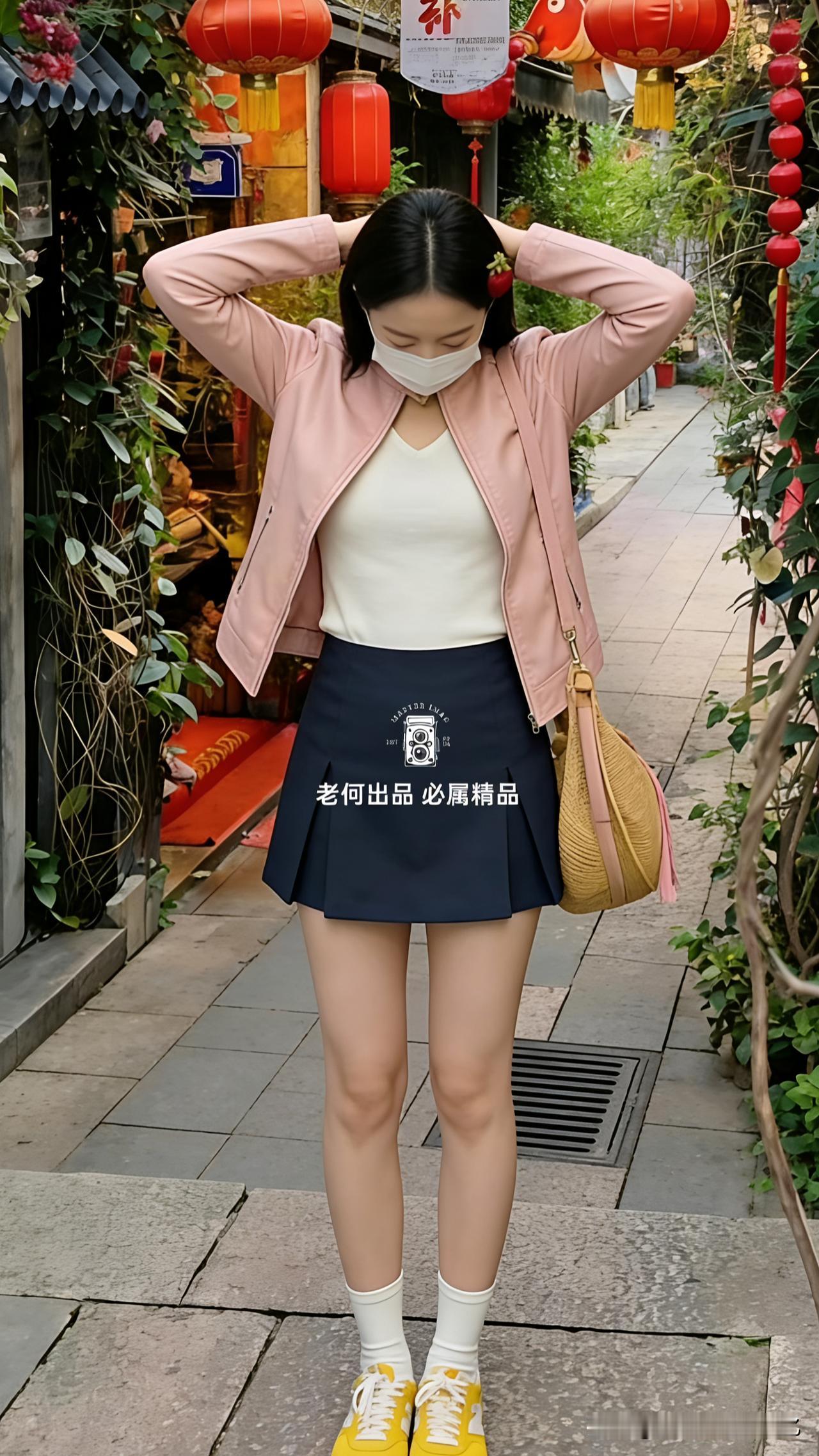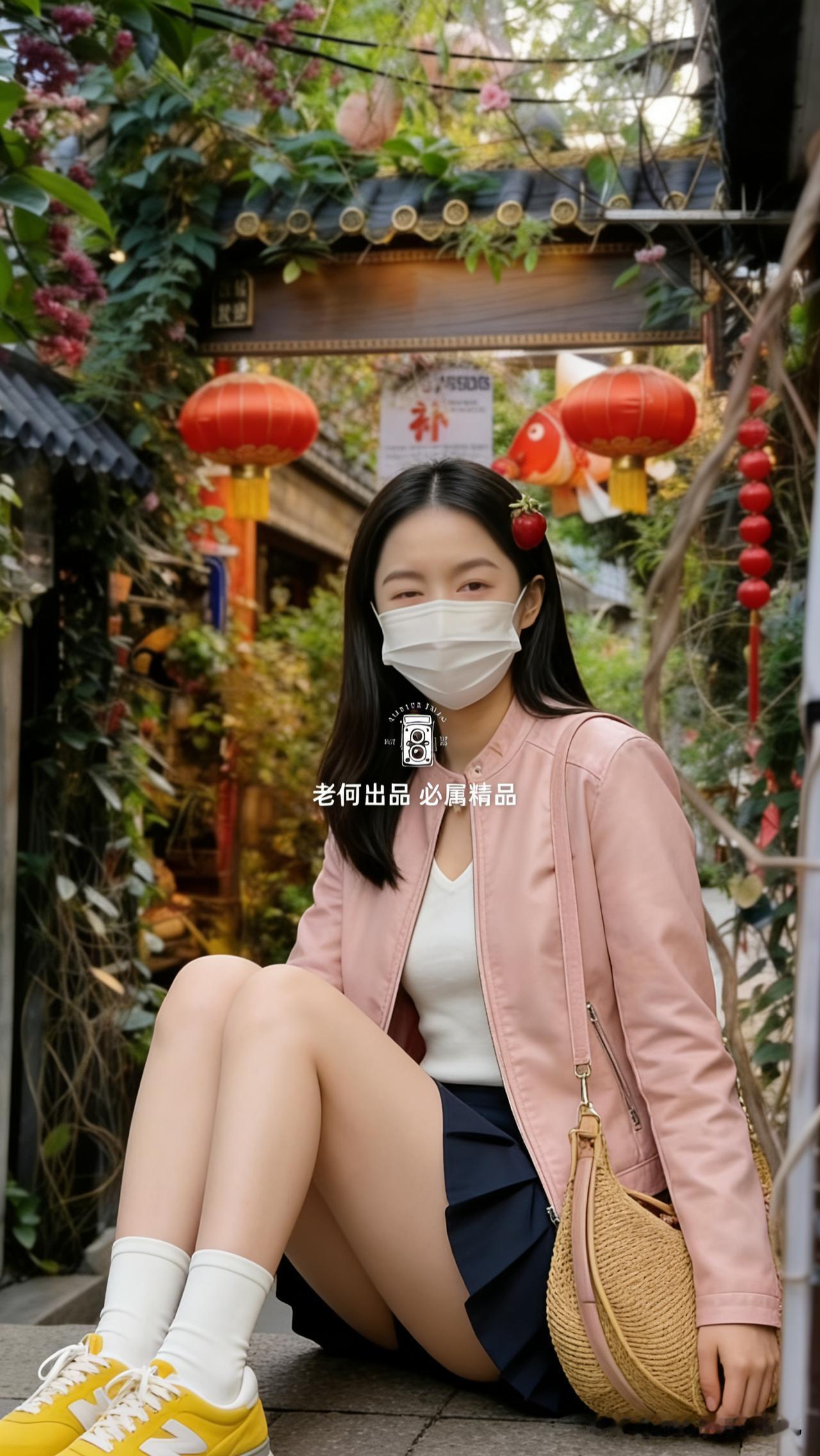 古巷灯笼下,她一身粉色短皮衣配深蓝百褶裙,再踩一双亮黄色运动鞋,刚一站定,整条街的目光都被她牢牢锁住。