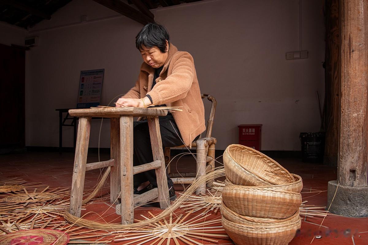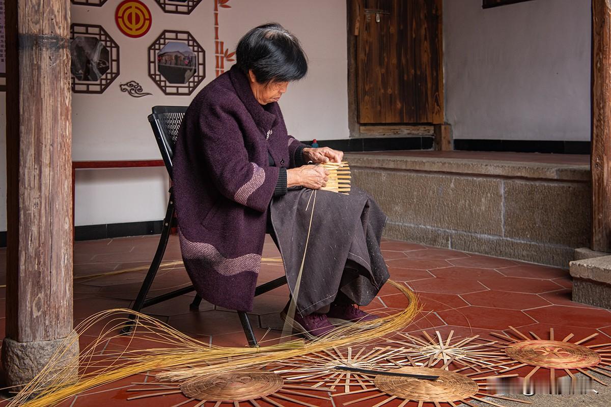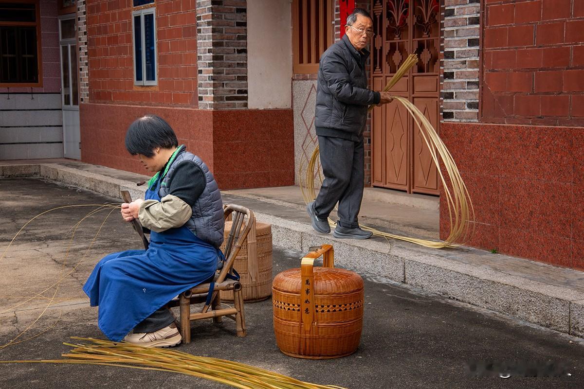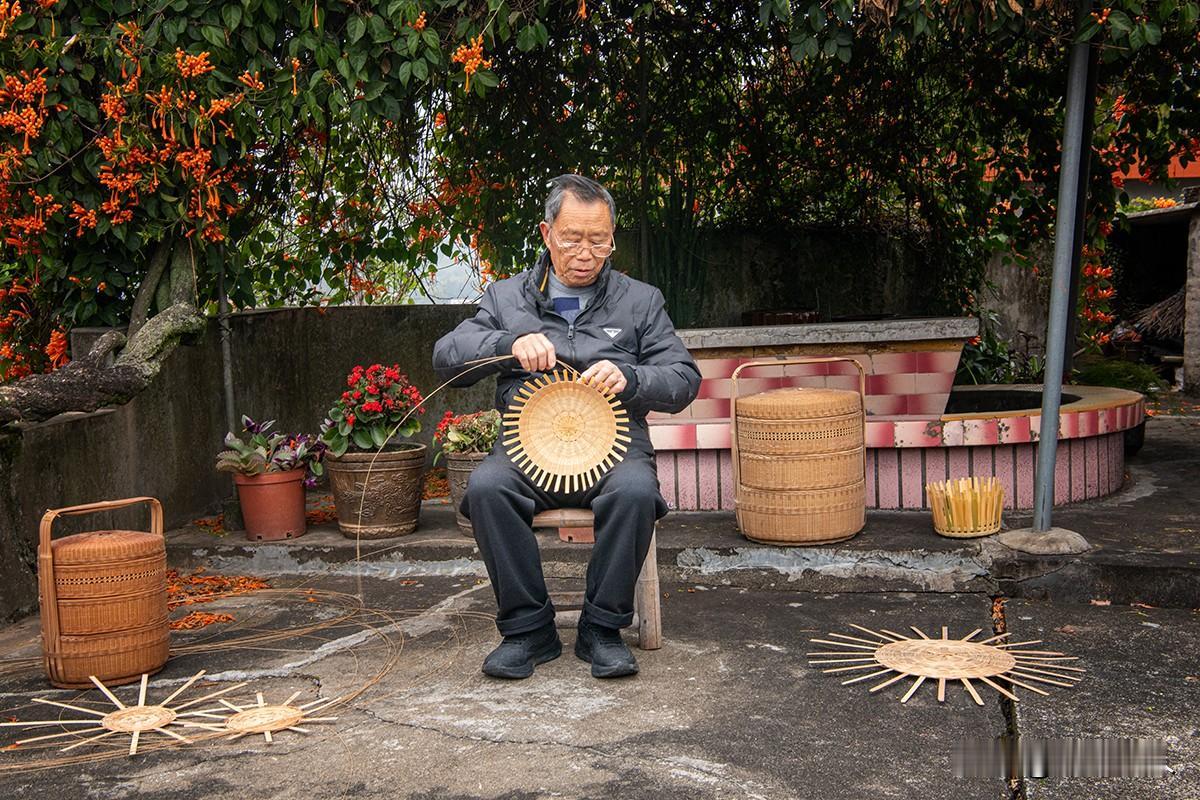 图片生动记录了竹编手工艺的传承。从户外红墙下到室内静谧处,手艺人专注编织,指尖流转着金黄竹条。老者坚守,青年延续,每一件竹器都凝聚着岁月与匠心,在质朴场景中展现传统技艺的生生不息。图片拍摄于泉州市永春县的“漆篮之乡”龙水村。