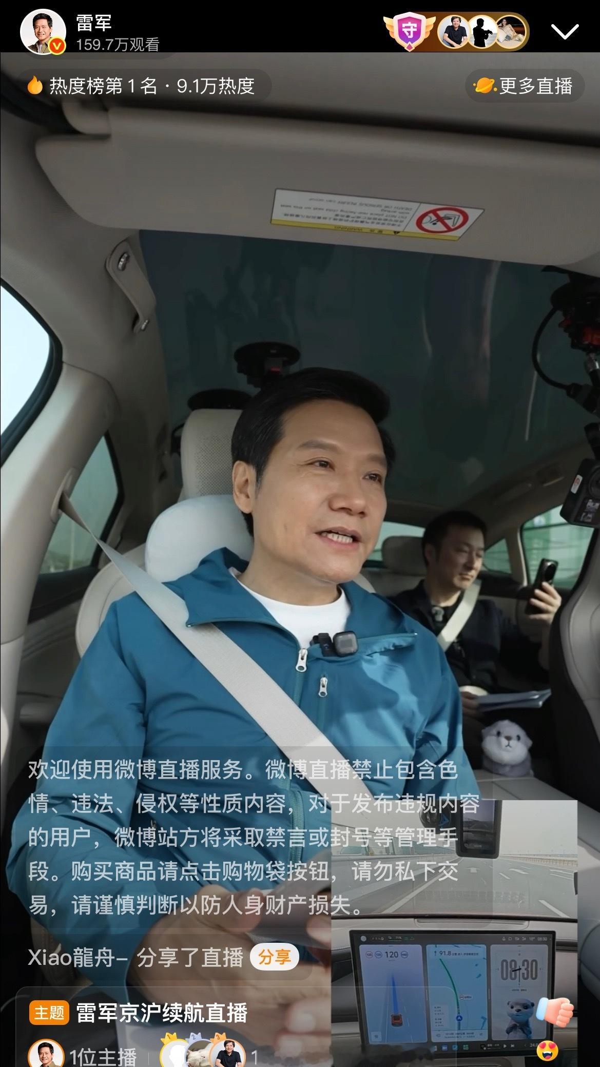 4月17日早上6:30,雷军直播新SU7北京到上海的长途续航测试。一大早,路