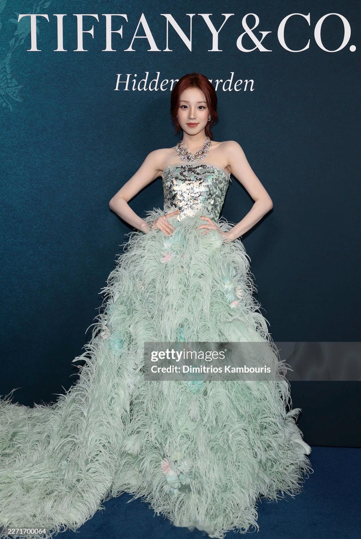 雨琦你随便吧 G社生图美成这样宋雨琦纽约线下活动状态宋雨琦薄荷绿抹胸羽毛裙造型