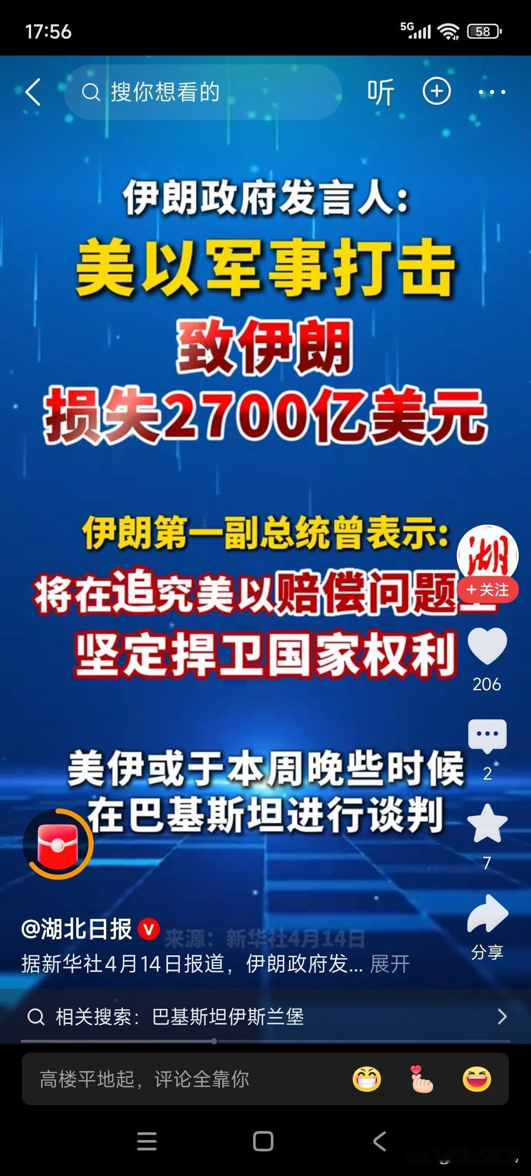 4月14日看到伊朗统计损失时,我就猜测伊朗会索赔损失!