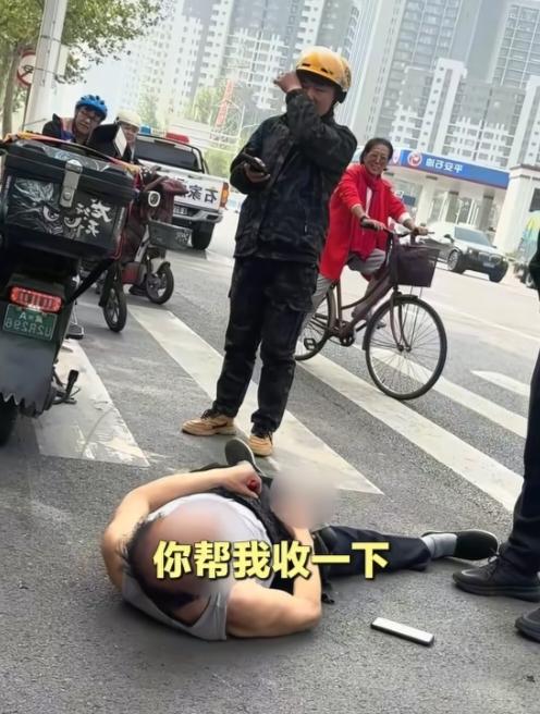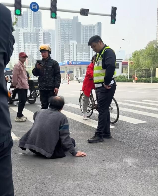 大爷收到转账后,交警将大爷从电动车上扶起来,他又在地上坐了一会儿,又躺了几秒,说自己腰闪了。