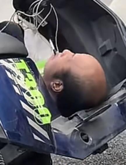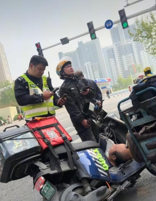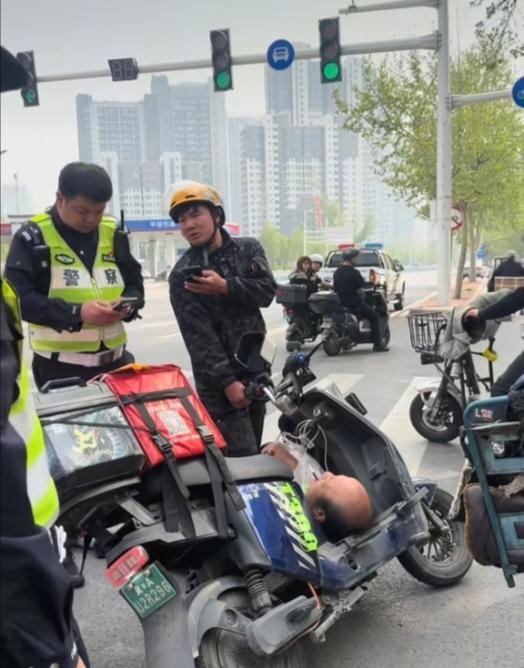 交警问他没事吧,他竟然说“没事儿,我没有受伤!”然后就起身骑着车离开了。