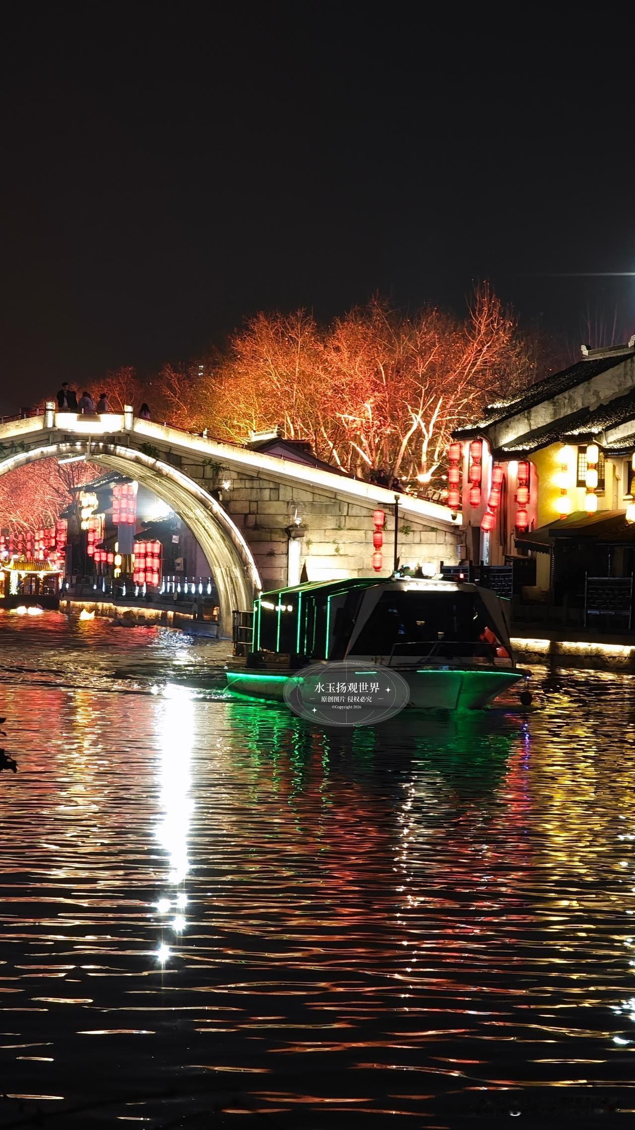 傍晚六点多,天刚擦黑,沿河的红灯笼就次第亮了起来,映得运河水面波光粼粼。站在跨塘桥码头,看着游船载着游人缓缓驶过,恍惚间觉得自己正站在一幅流动的《清明上河图》里。这里可是世界文化遗产中国大运河的"江南水弄堂,运河绝版地",当年漕运兴盛时,南来北往的商船就在这里卸货、交易,码头上的石板路被独轮车碾出了深深的车辙,如今摸上去还能感受到岁月的质感。