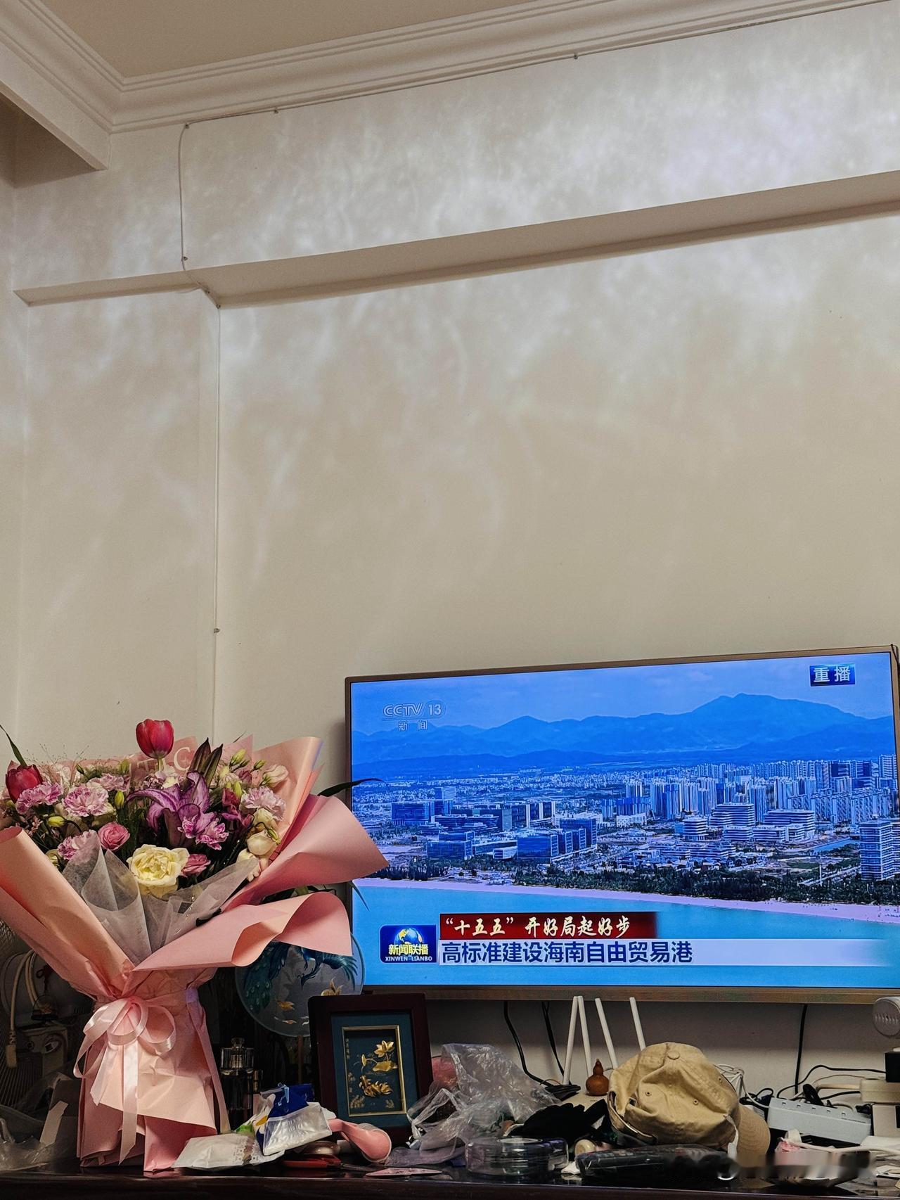 我把花放在电视旁,一抬头就能看见,满眼尽是温柔。