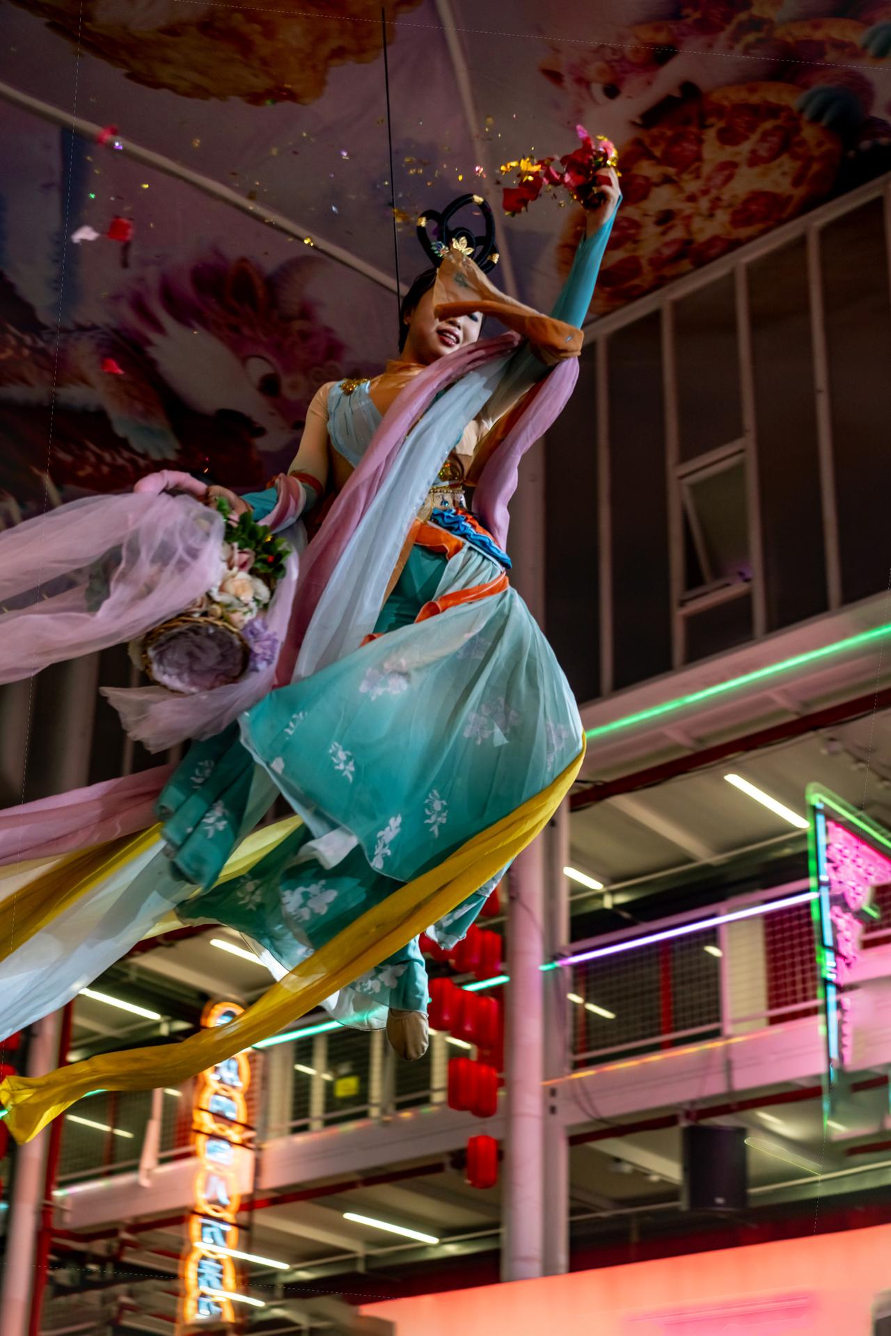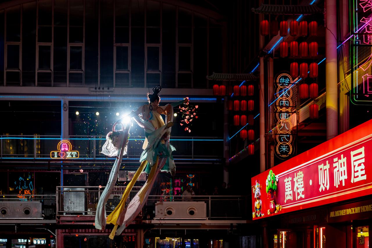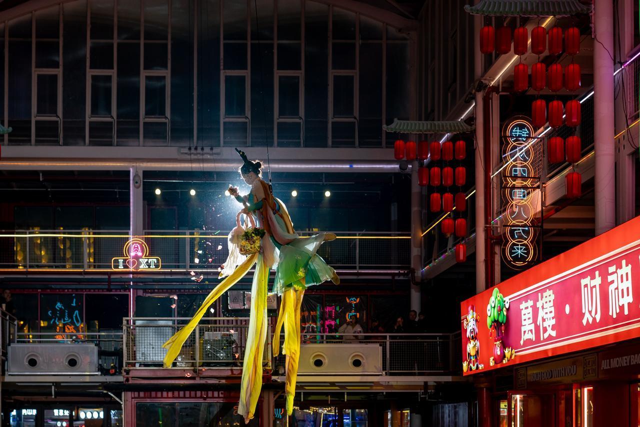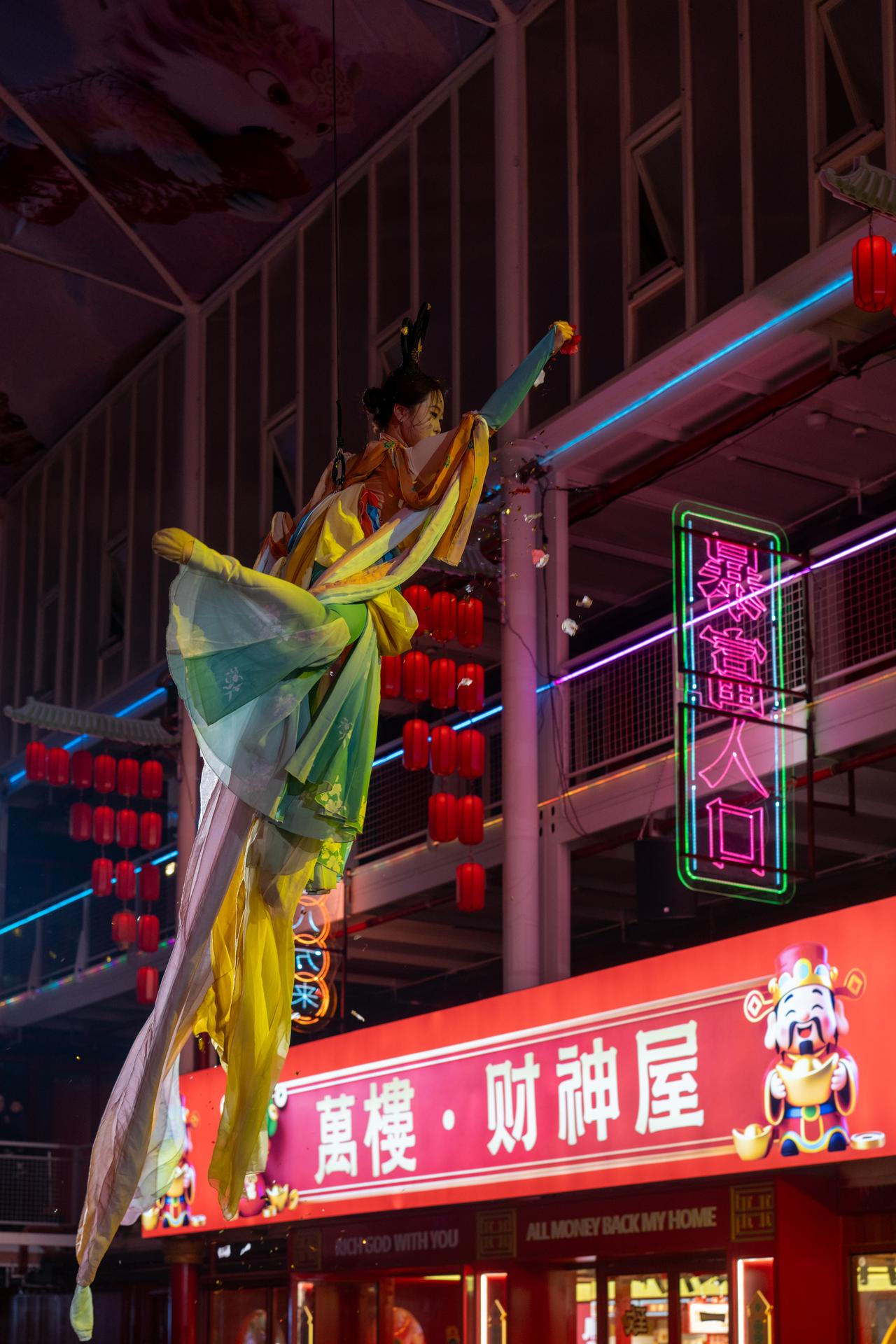 抽了主楼有灯光秀,旁边的小广场还有火焰表演;室内则有很精彩的“天女散花”演出,绝对不能错过。