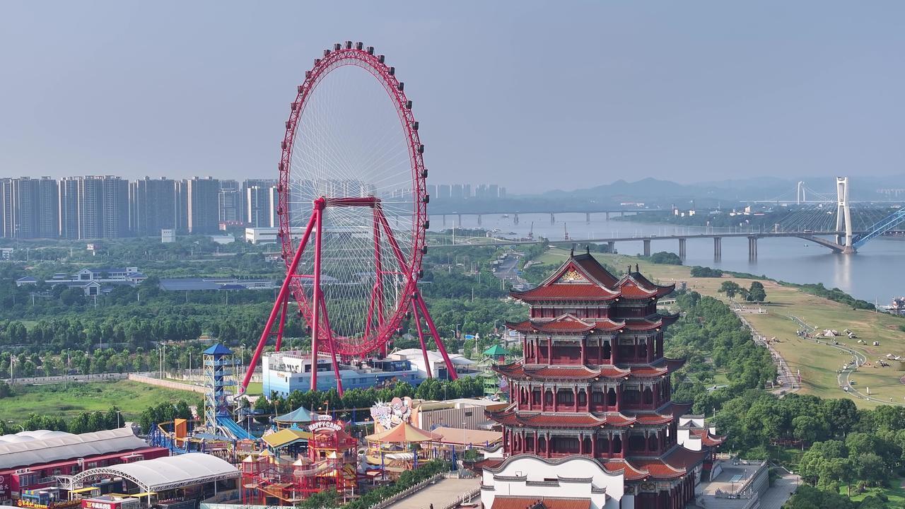 来湘潭第一天,我第一眼看到的,就是这个湘江边的古建筑——万楼。旁边就是巨大的摩天轮,古典和现代娱乐的距离,颇有点赛博朋克的魔幻。