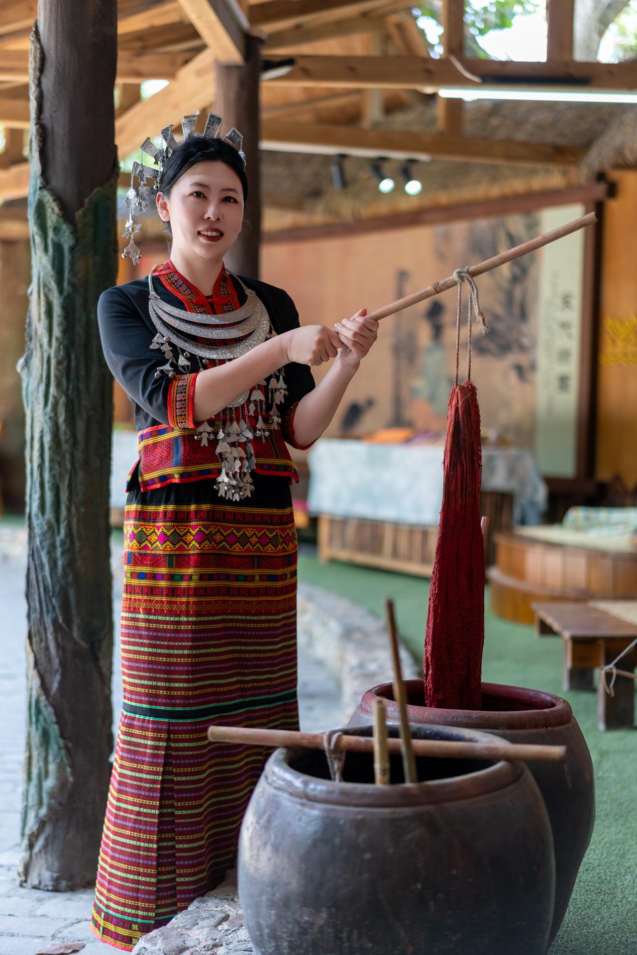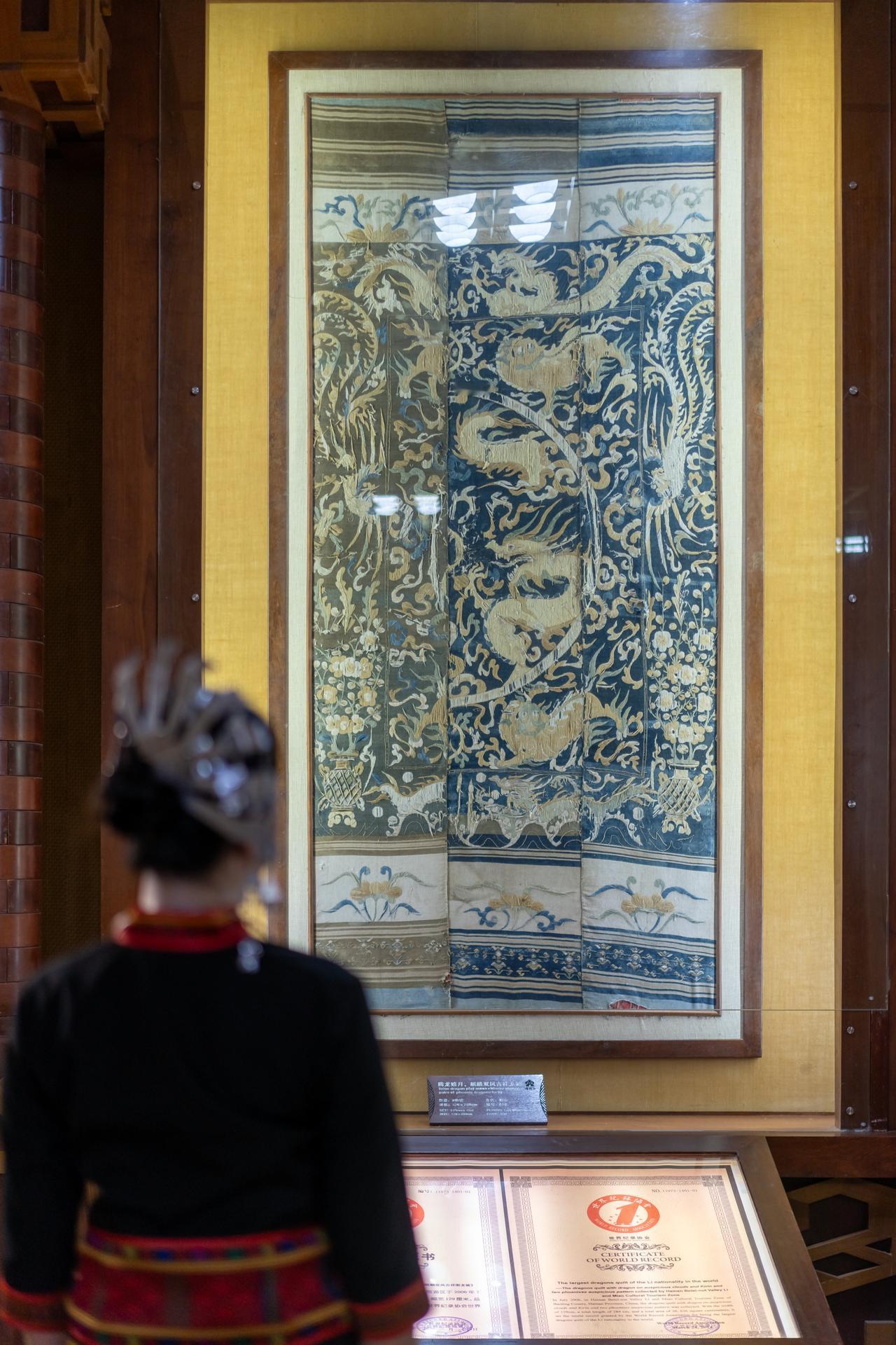 你如果真的喜欢、关注这些非遗技艺,你可以体验从木棉的采摘、纺线、染色到织锦的全流程,还有巅峰作品的——龙被馆可以看。