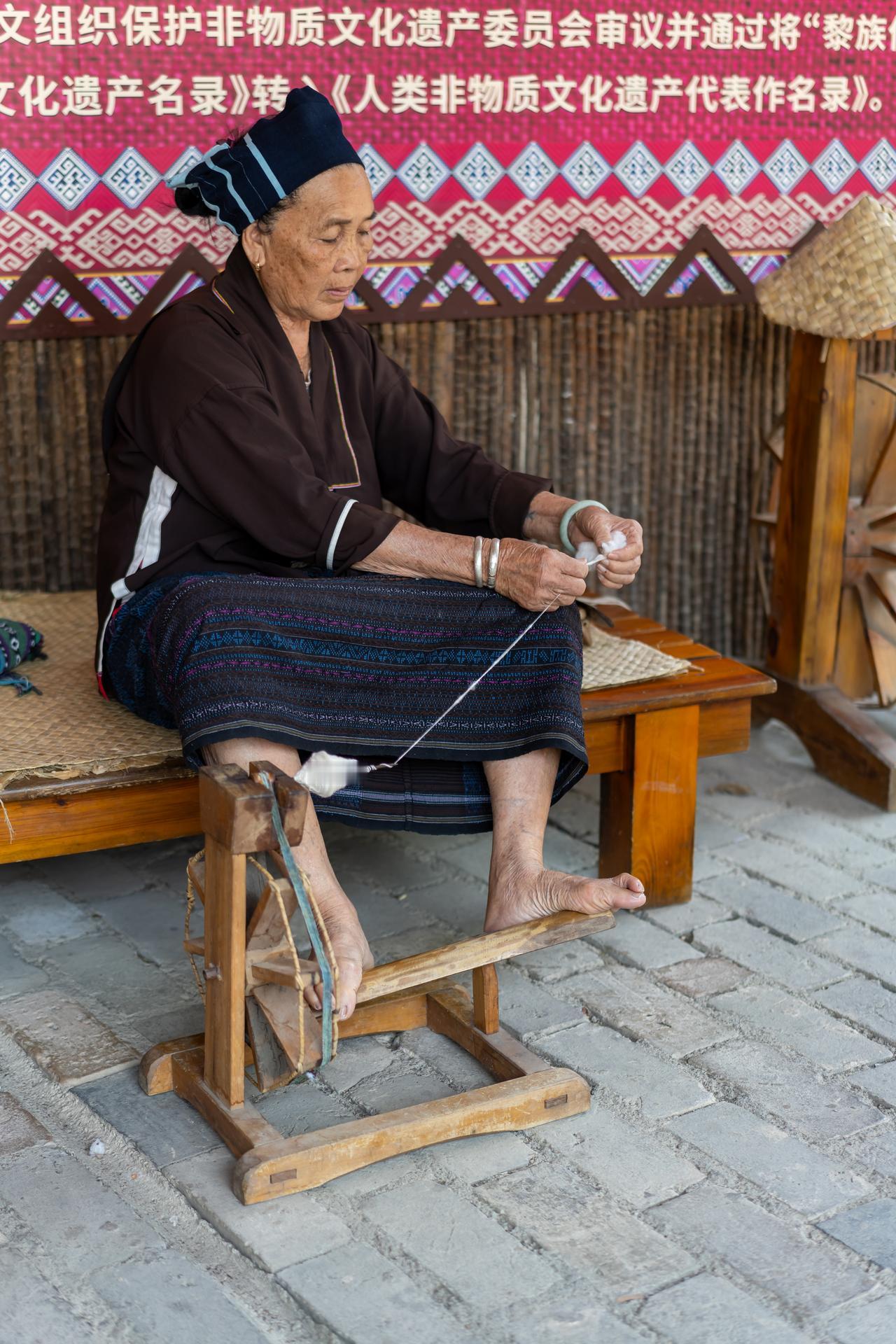 这穿越了时间的“黎族传统纺染织绣技艺”(黎锦)在此刻活了过来。它不止是国家级非遗,更是被联合国教科文组织列入“急需保护的非物质文化遗产名录”。当年黄道婆不远千里,从崖州把黎族的织锦技艺,从海南引进了江南,成就了长江下游的财富传说。而这里的黎锦还按照原来的风格留存。