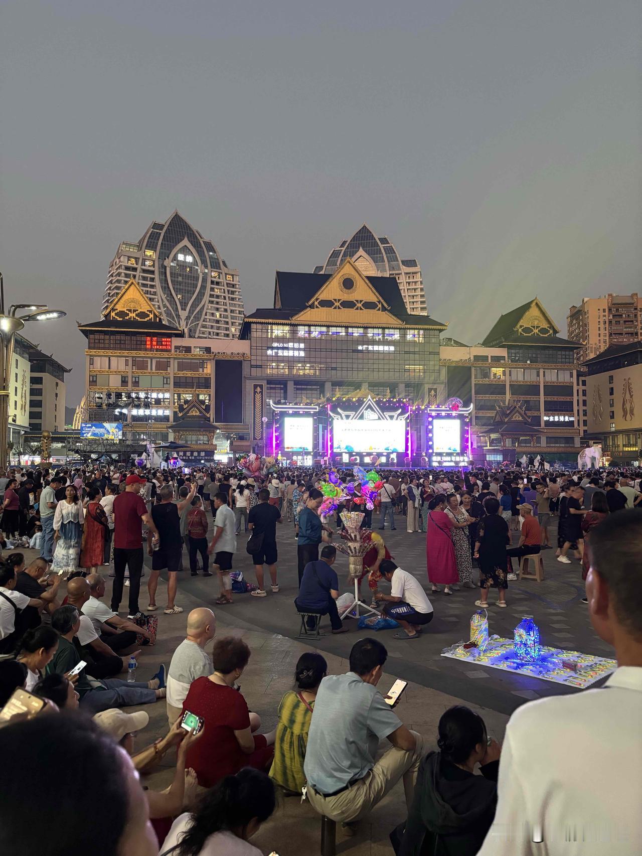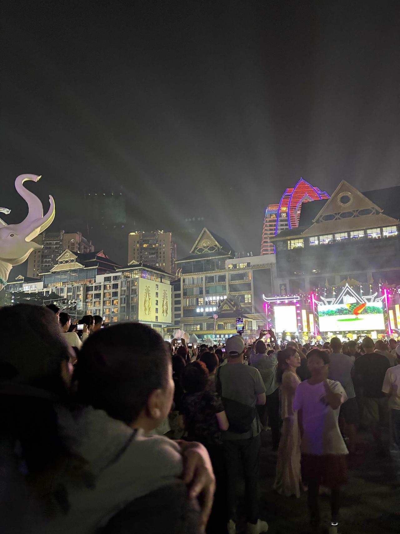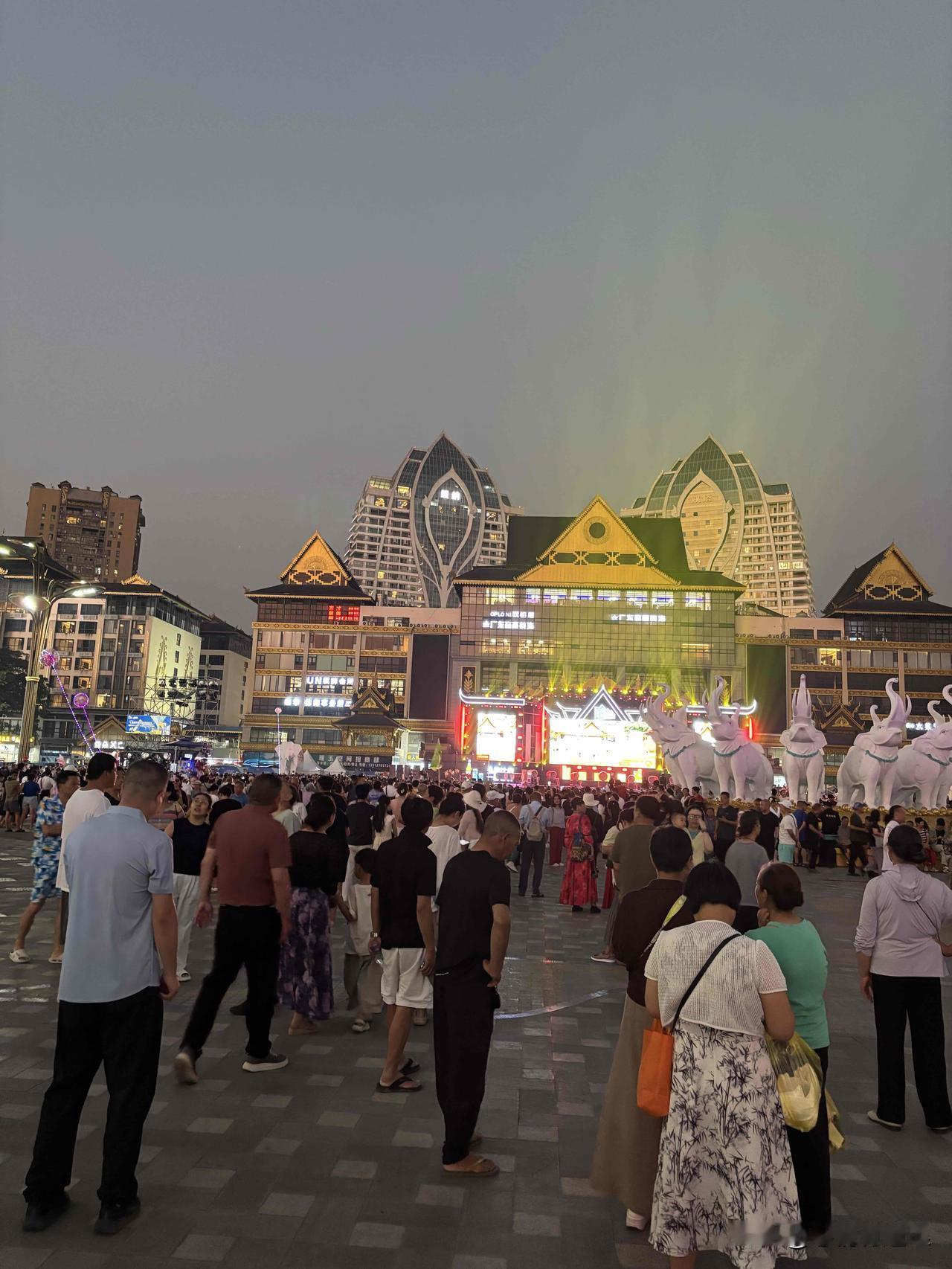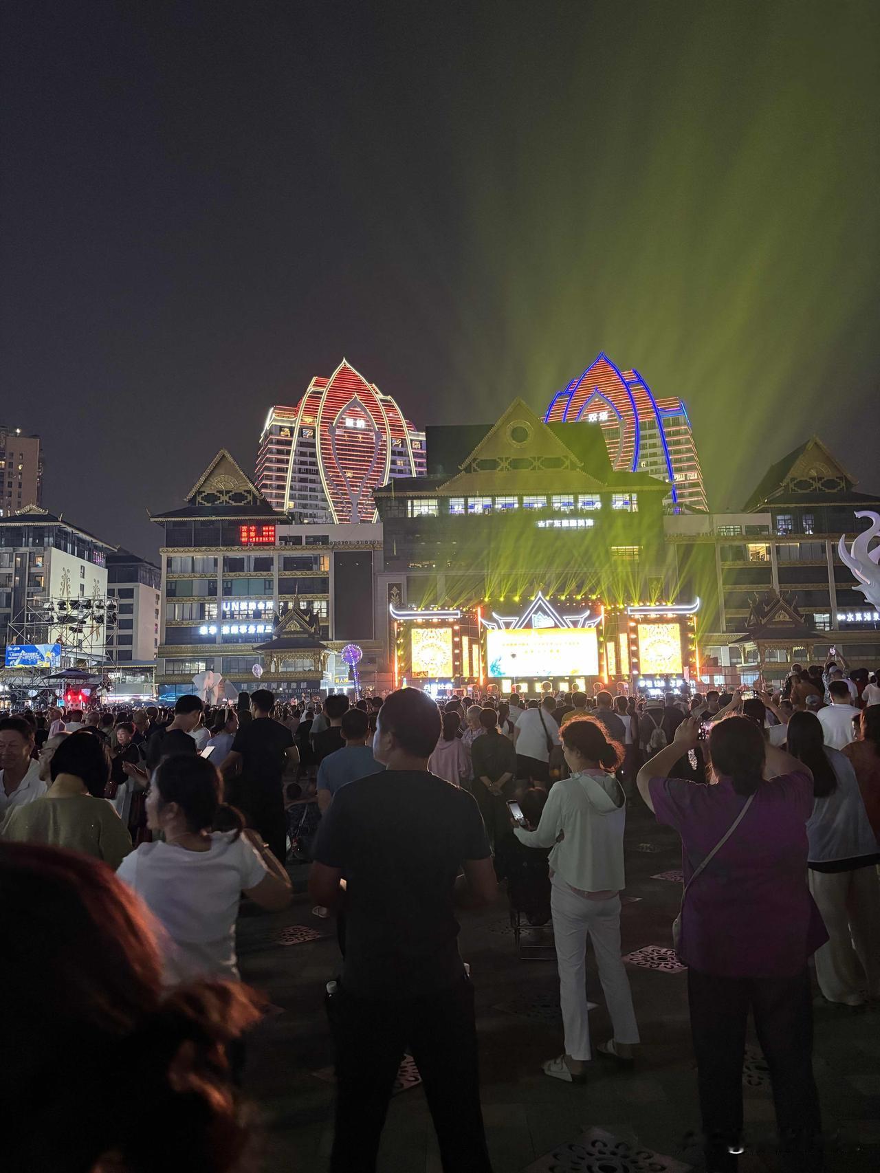 这是西双版纳傣族自治州景洪市的泼水广场。今天晚上傣历1388新年节暨2026年泼水节迎新文艺晚会在这里举行。