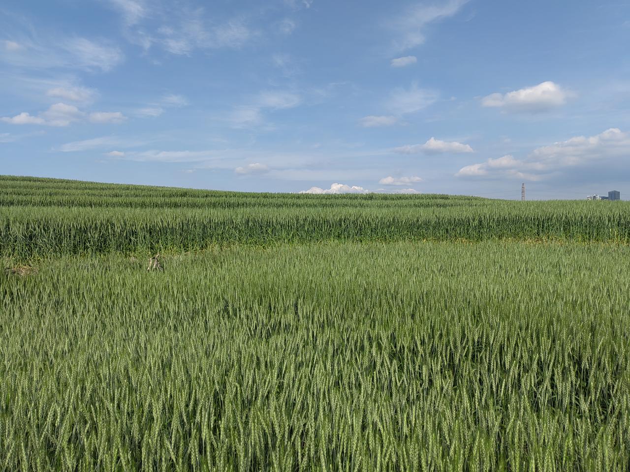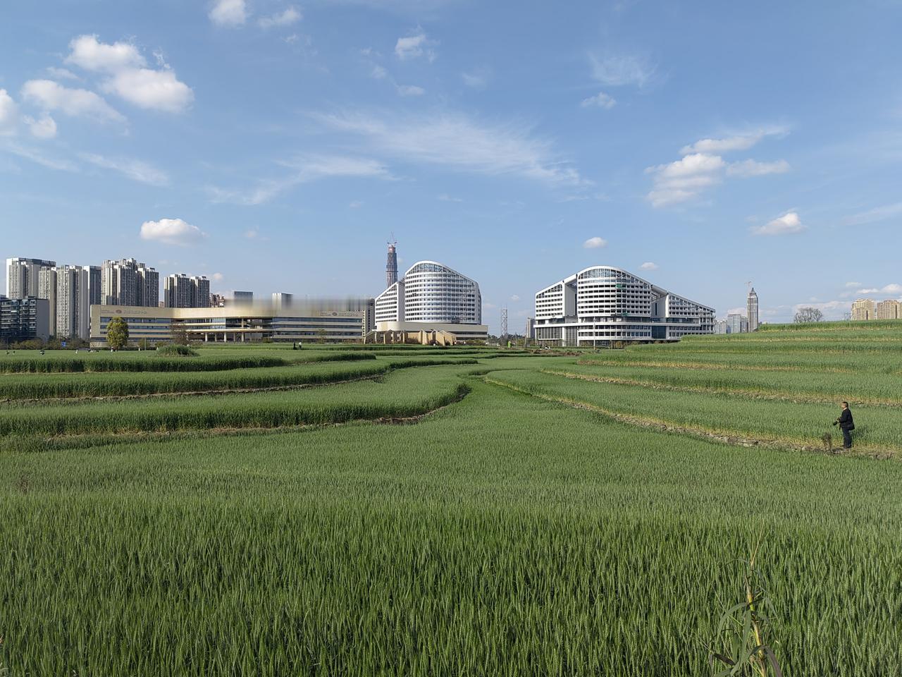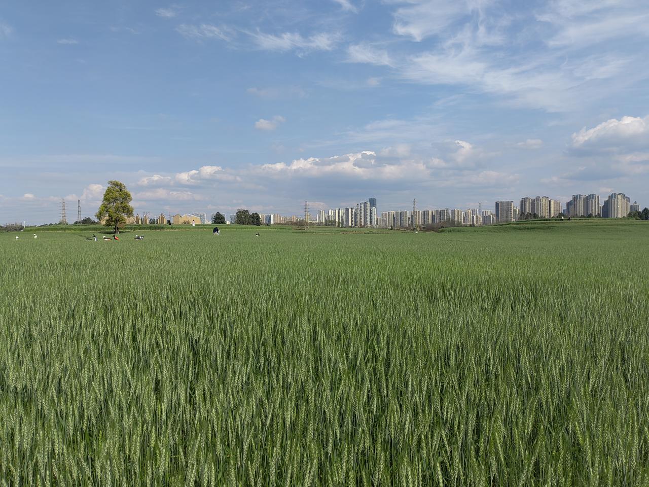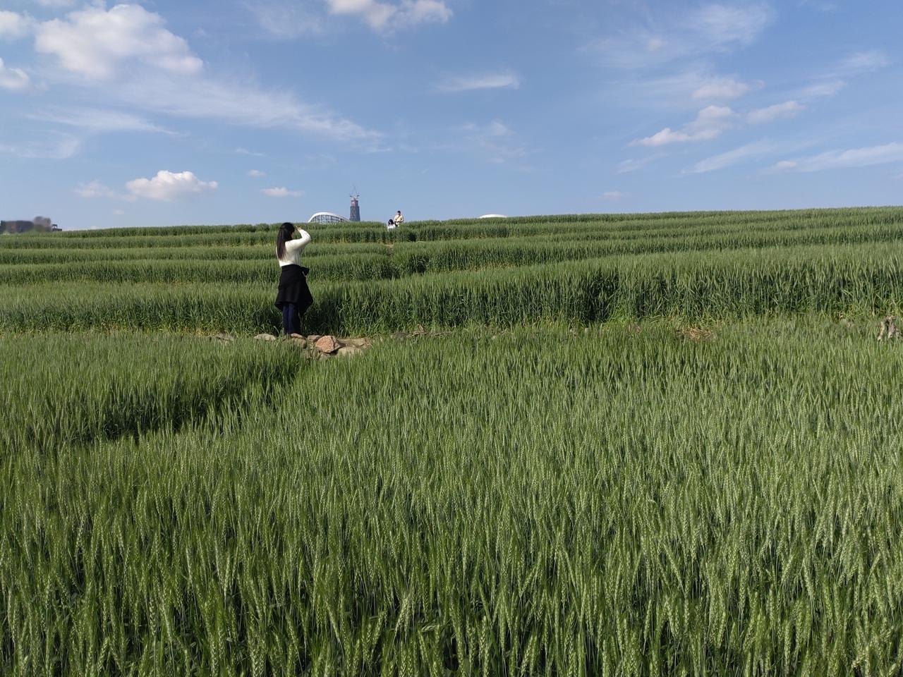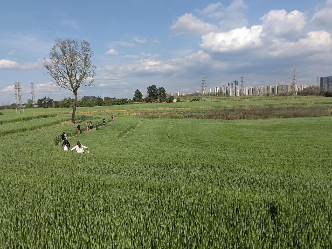 地铁三圣乡站出来,徒步约十分钟左右,在花博路附近,成都血液中心后门正对面,有一大片不知名的麦田。虽未到风吹金黄麦浪时,但茂盛的青麦,在城市边际线衬托下,自成一景,别有一番风味。阳光下、麦田间,快乐留影的人们,置身于这大自然的馈赠中,悠然自得。
