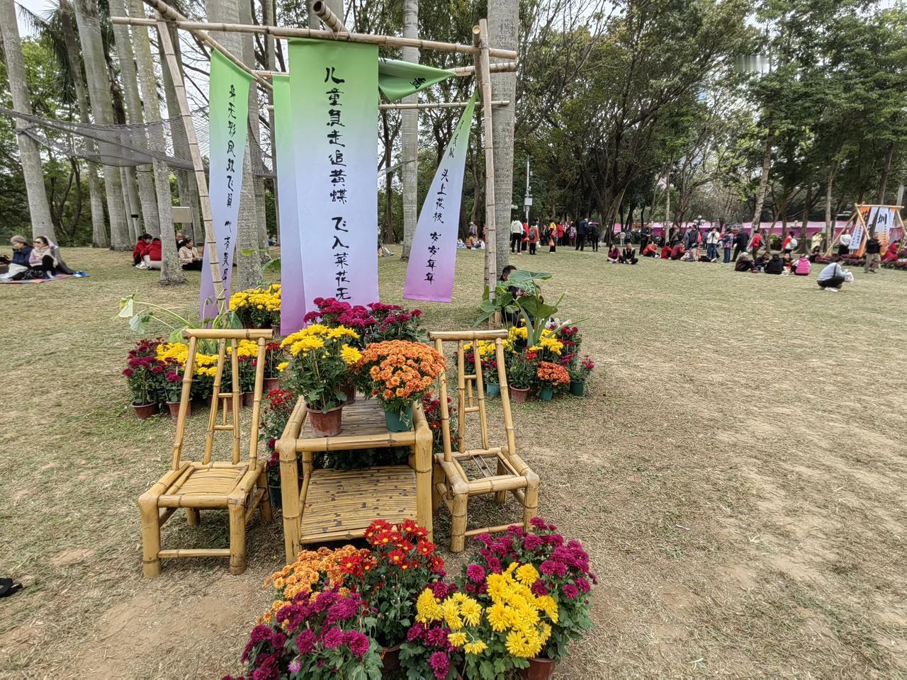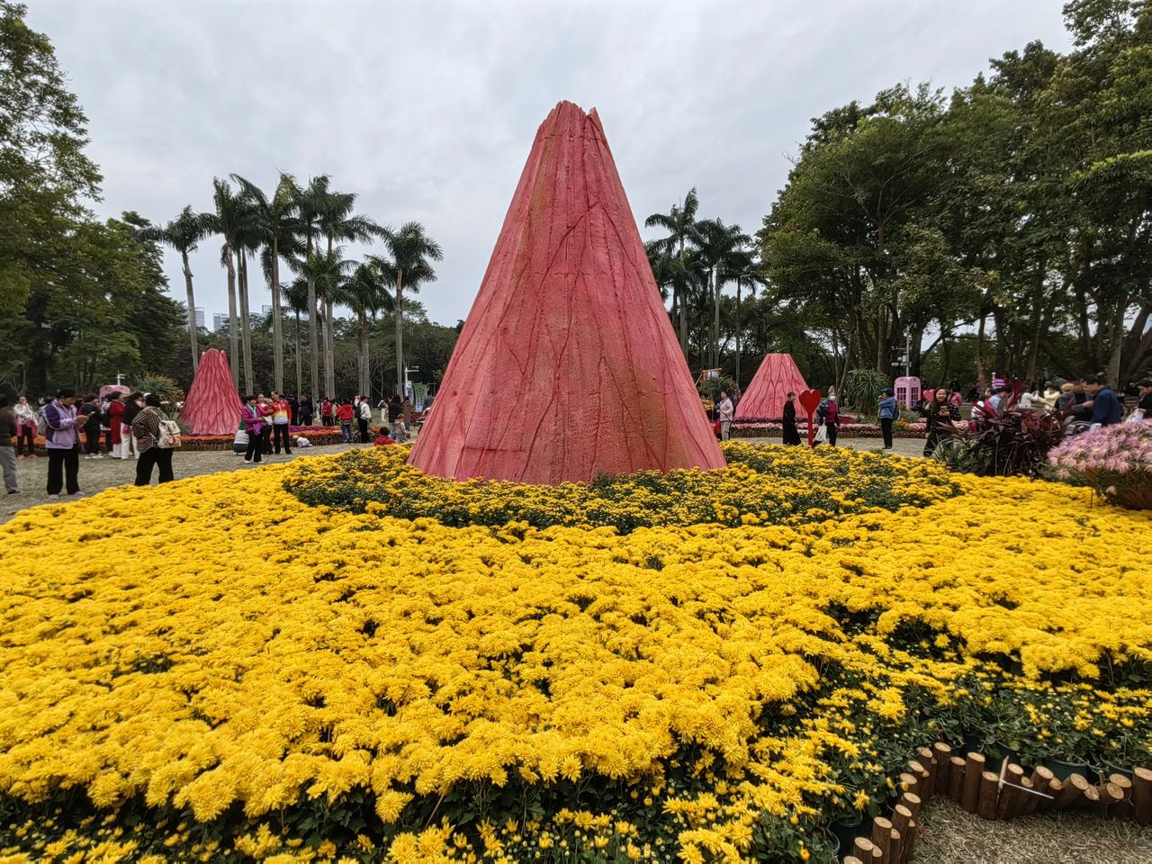 今年的深圳东湖公园菊展,总体规模比去年小。依然没有精品菊花展。潮流集市规模比去年有所增加。在杜鹃园门口和阳光草坪上用少量潮流集市置换了往年的菊花打卡点。