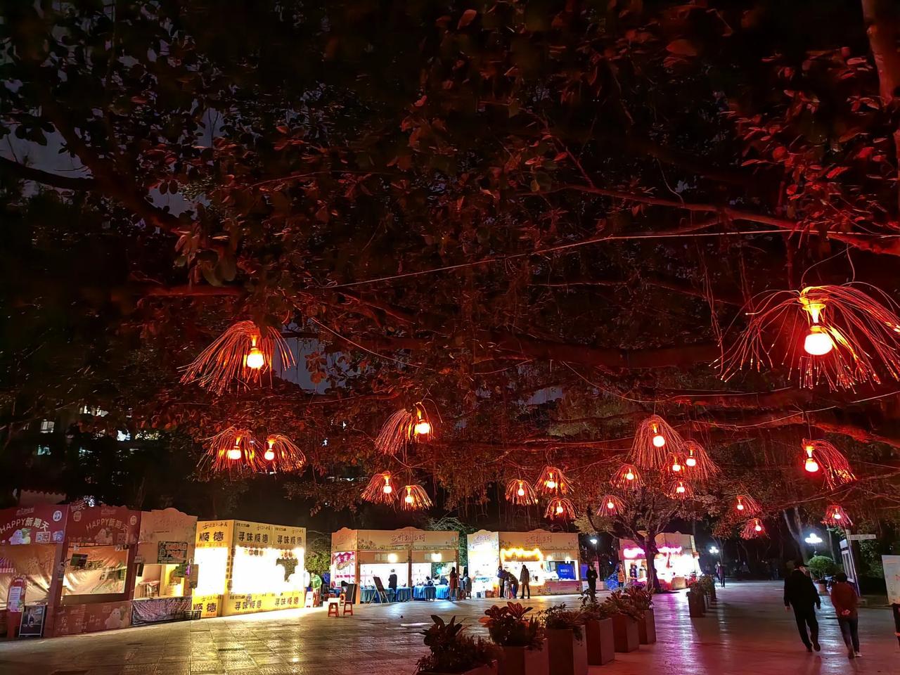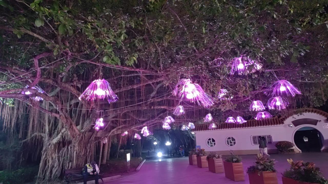 夜晚除了潮流夜市,杜鹃园处大榕树和小桥上的灯光、附近新建成的潮流公厕也蛮有特色。
