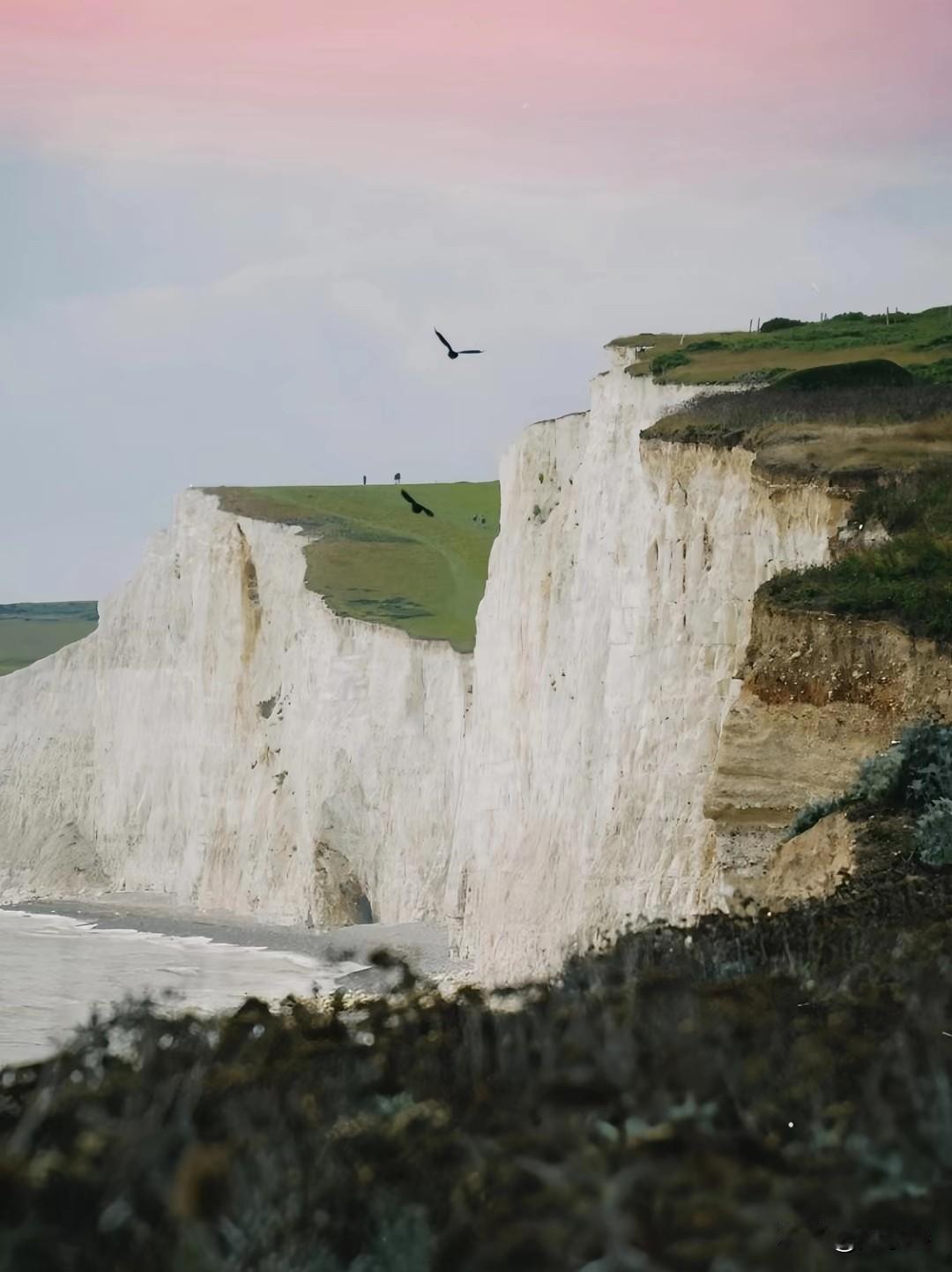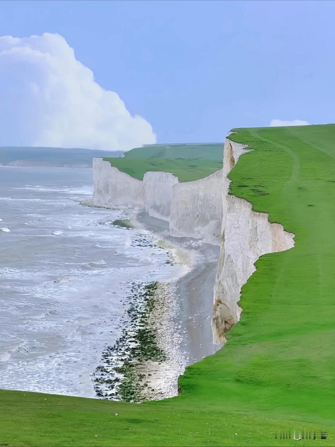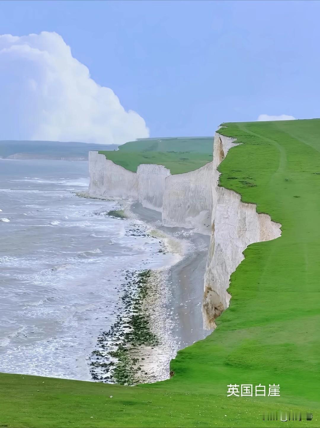 英国白崖。其实就是法国对面,英国海岸的一段特别白的山体。因为大英岛的全境,都是黄石头,有这么个雪白的陡崖,还有绿草覆盖在上面,蛮挺吸晴的。啥事儿,都是贵在稀缺,贵在自然。