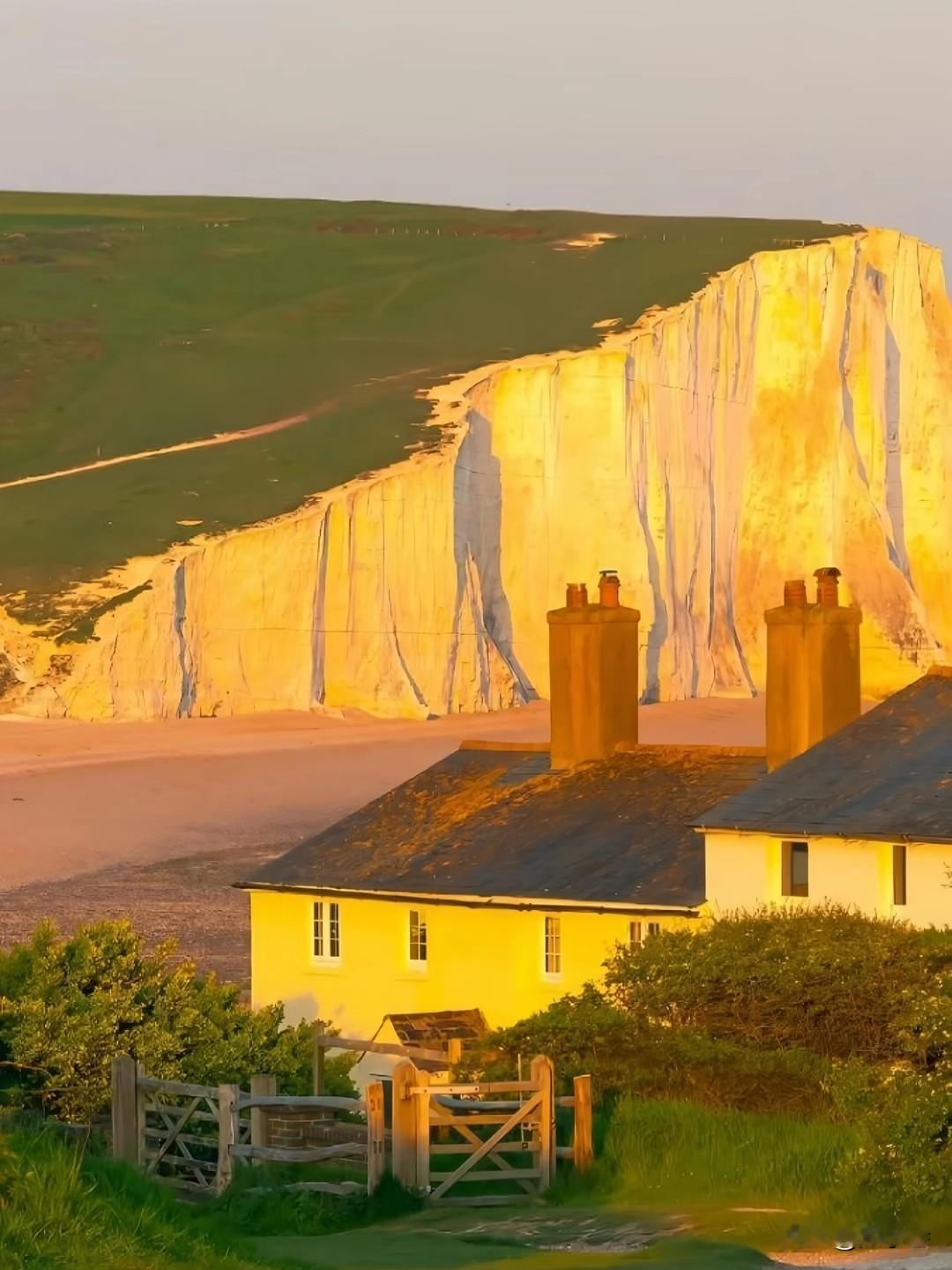 英国白崖。其实就是法国对面,英国海岸的一段特别白的山体。因为大英岛的全境,都是黄