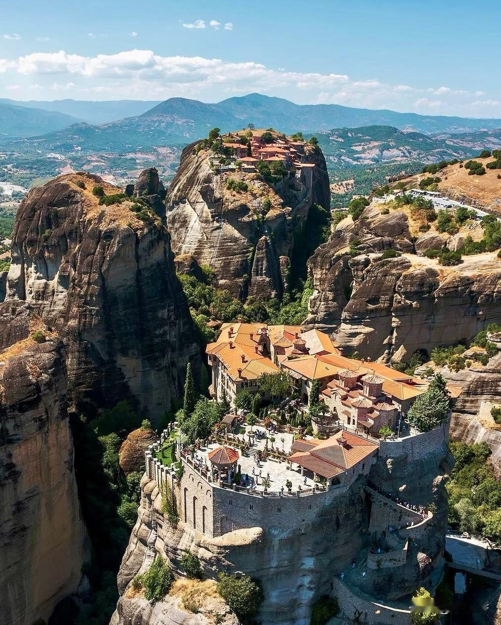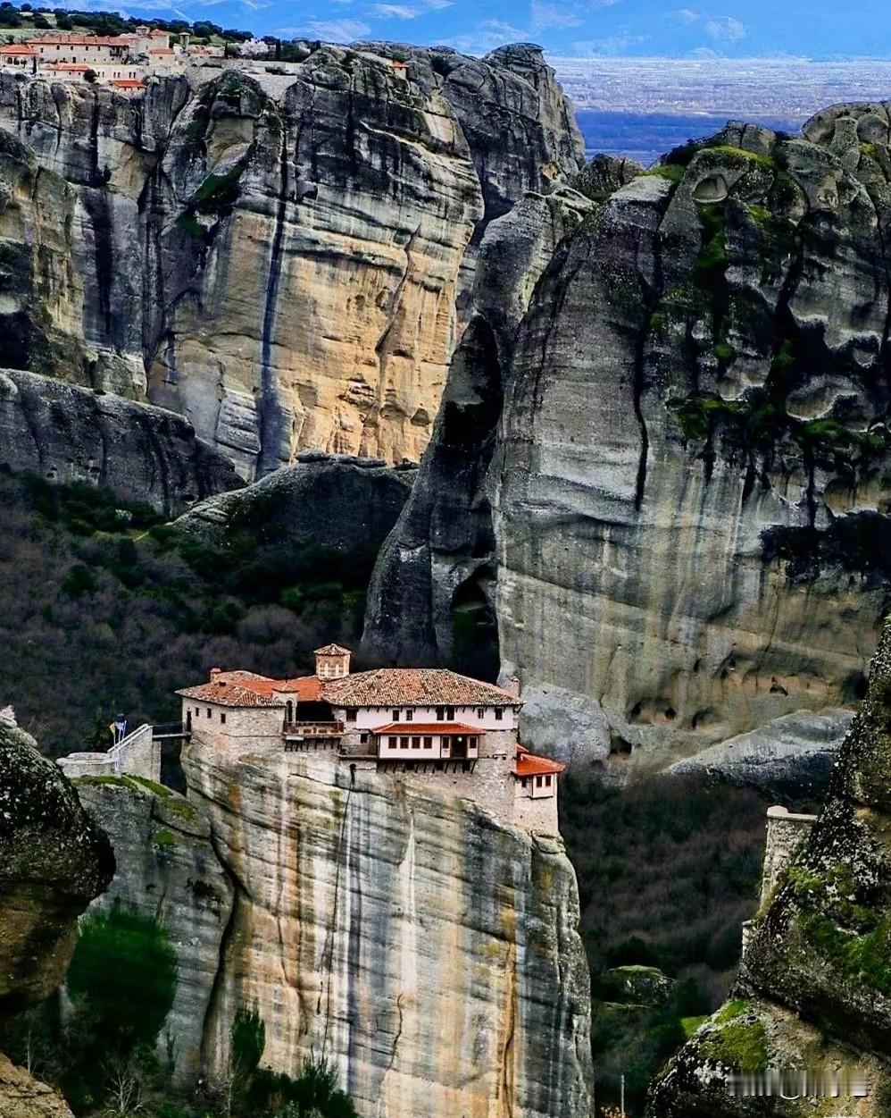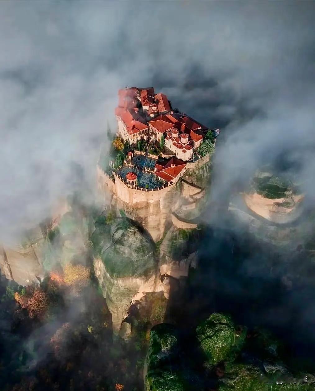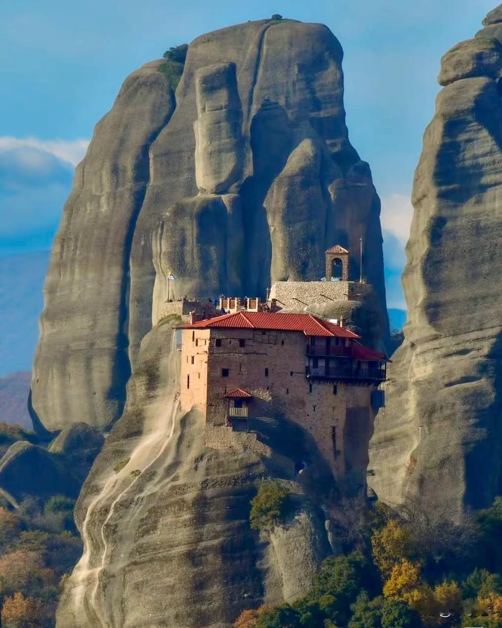 希腊迈泰奥拉。如果不是有特殊原因,谁愿意住在一个没有电梯的独立岩壁上面呢?估计这修道院也是没招了,跑这里盖个房子,材料咋往上运的,平时喝水、做饭、洗澡的水,咋整?但是,上厕所应该没问题。估计,他们是克服了。要不也不能挺到现在。不过呢,这里是真清净,连蚊子都飞不上去,还是个修心的好去处。