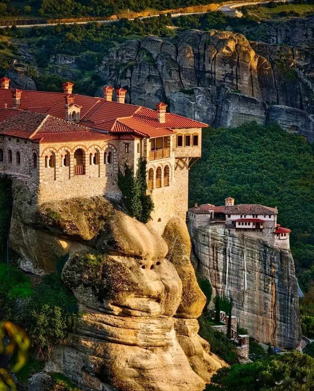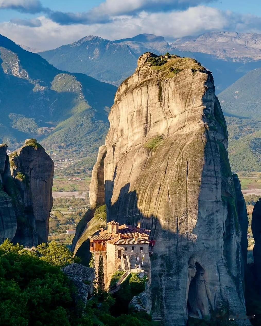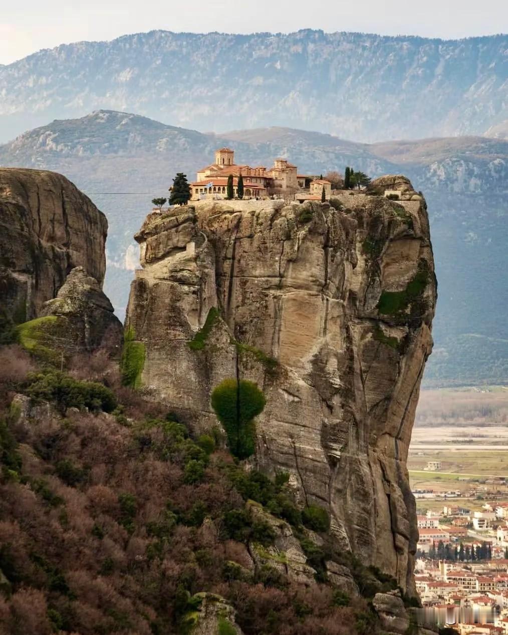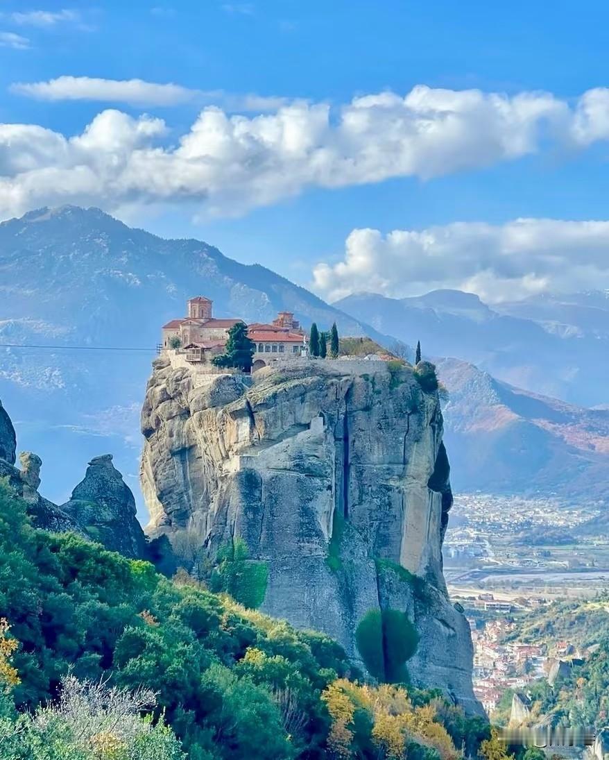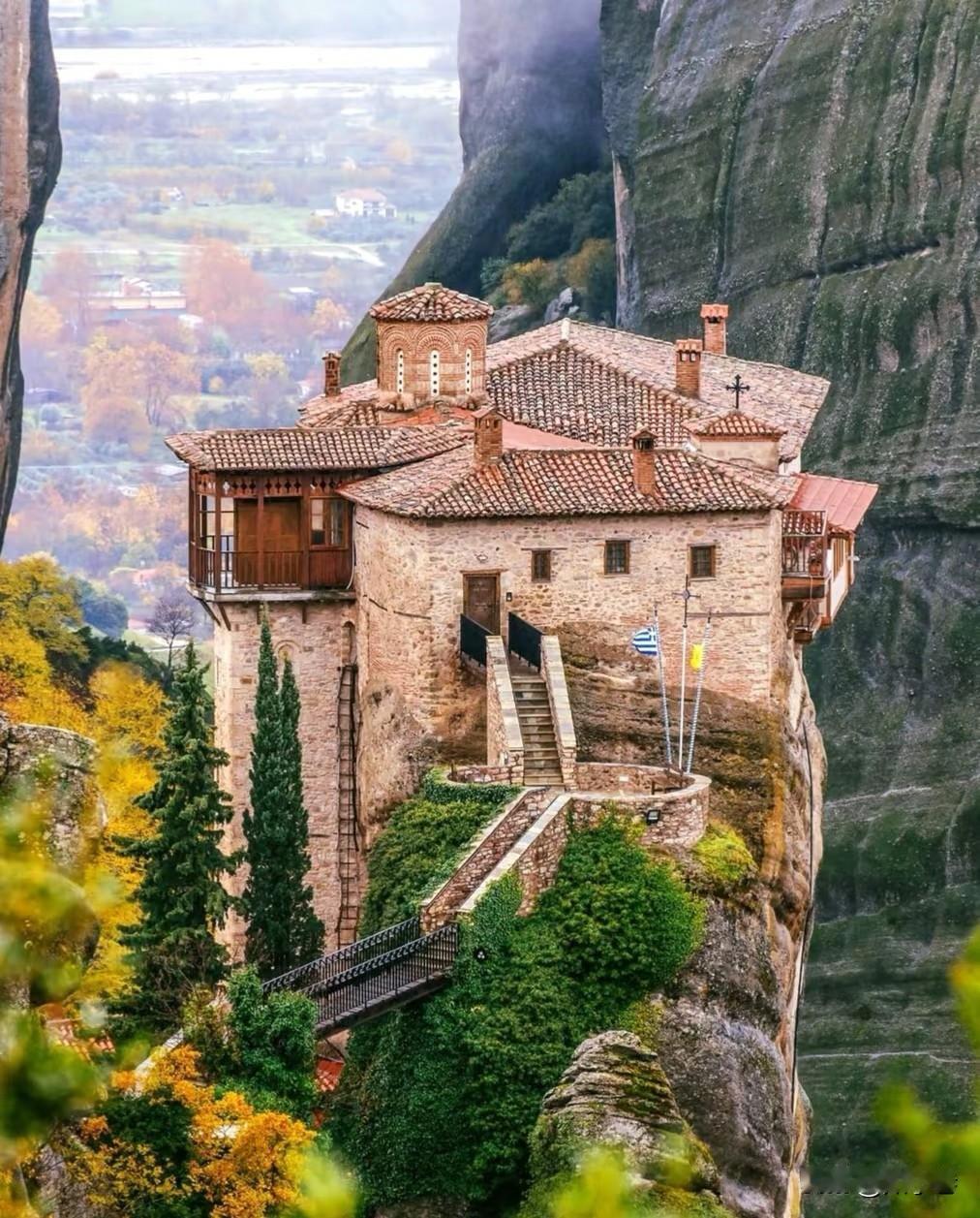 希腊迈泰奥拉。如果不是有特殊原因,谁愿意住在一个没有电梯的独立岩壁上面呢?估计这修道院也是没招了,跑这里盖个房子,材料咋往上运的,平时喝水、做饭、洗澡的水,咋整?但是,上厕所应该没问题。估计,他们是克服了。要不也不能挺到现在。不过呢,这里是真清净,连蚊子都飞不上去,还是个修心的好去处。