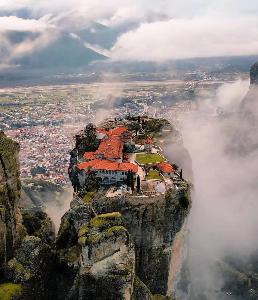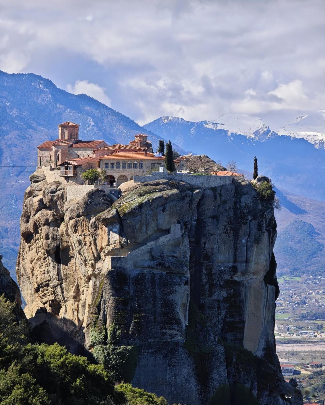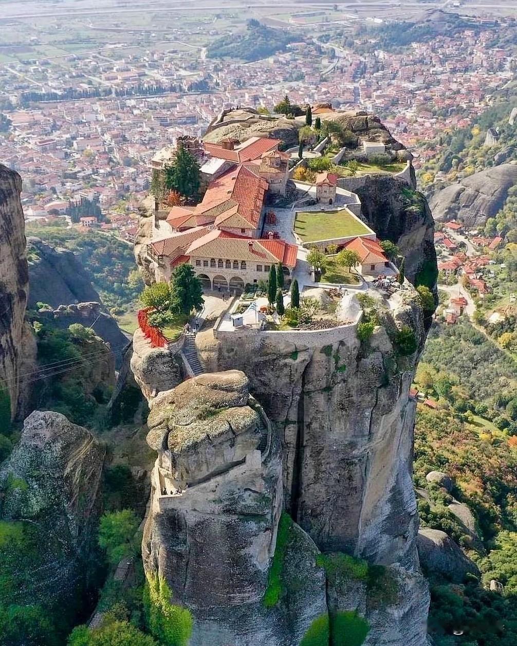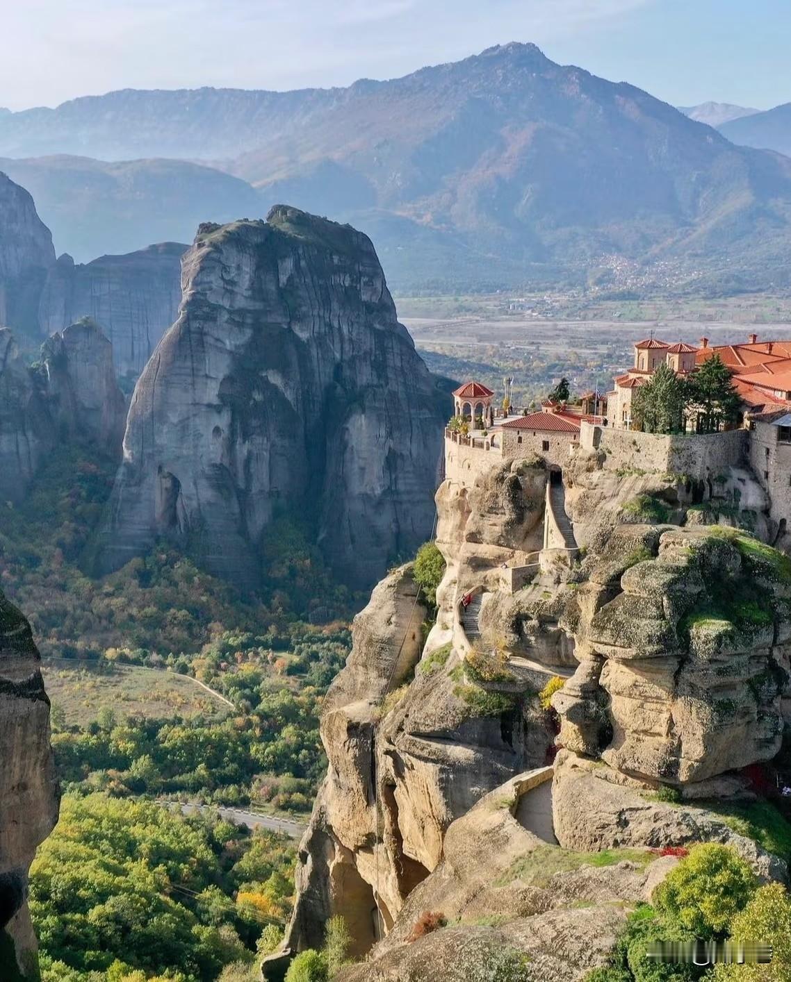 希腊迈泰奥拉。如果不是有特殊原因,谁愿意住在一个没有电梯的独立岩壁上面呢?估计这修道院也是没招了,跑这里盖个房子,材料咋往上运的,平时喝水、做饭、洗澡的水,咋整?但是,上厕所应该没问题。估计,他们是克服了。要不也不能挺到现在。不过呢,这里是真清净,连蚊子都飞不上去,还是个修心的好去处。