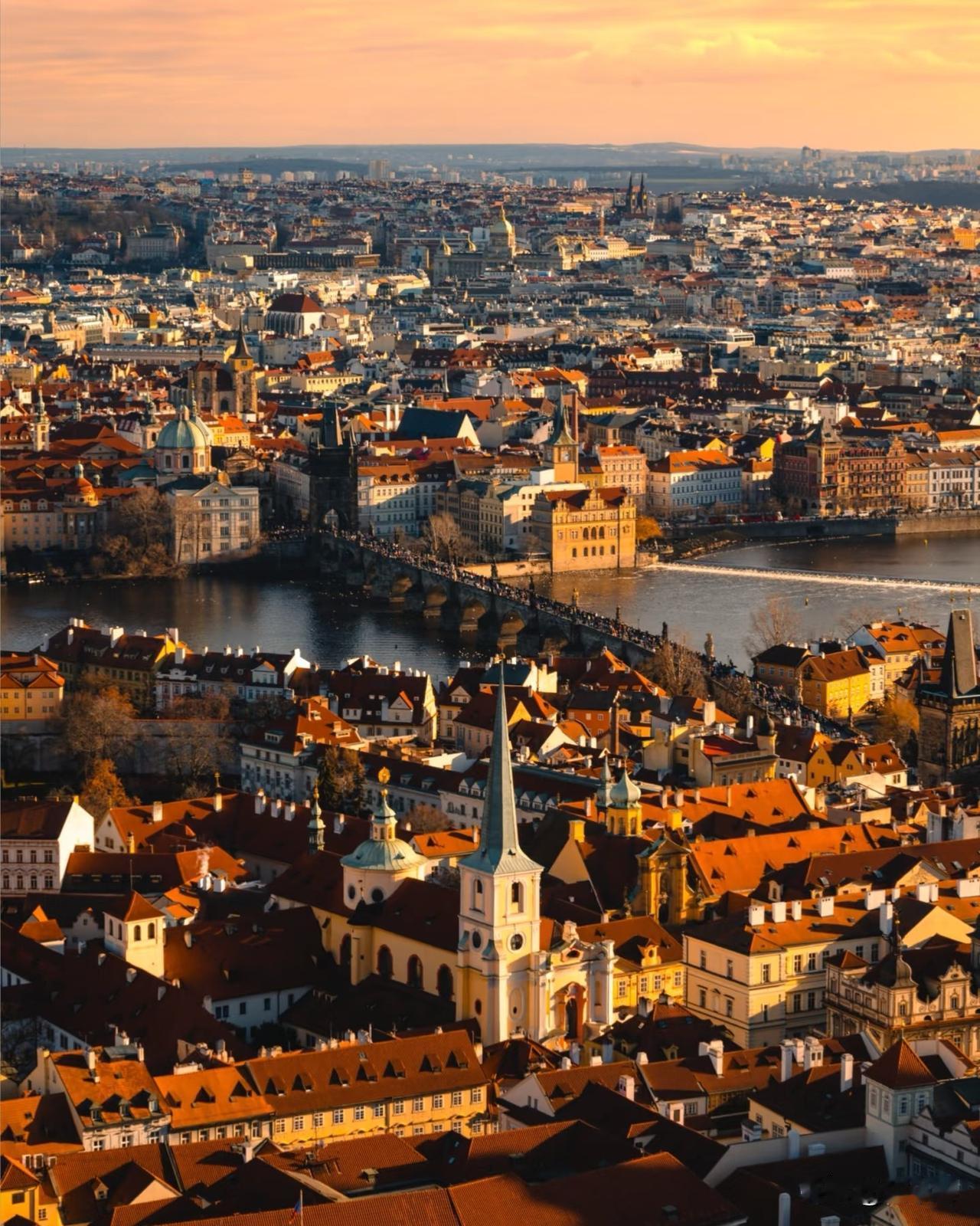 捷克布拉格。什么叫世界文化遗产,这红红的一片片屋顶,那一个个的塔尖,就告诉世人,