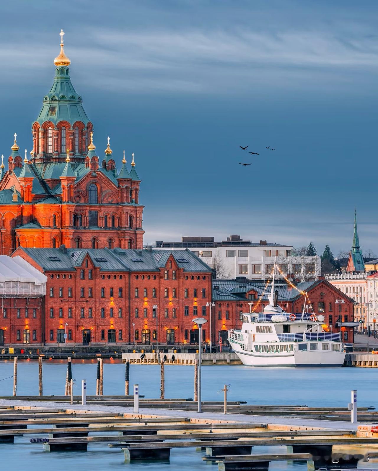 芬兰赫尔辛基。曾经的一代神机诺基亚,是芬兰的;那个穿着红色睡衣,每年年末架着驯鹿车的老人出来溜达的,是芬兰的。这个满街都是新古典主义和拜占庭式建筑的地方,它是芬兰首都赫尔辛基。而且,这城市还临着波罗的海,交通很发达。除了红砖教堂,就是白色花岗岩的大教堂,这种颜色上对比,让人耳目一新。