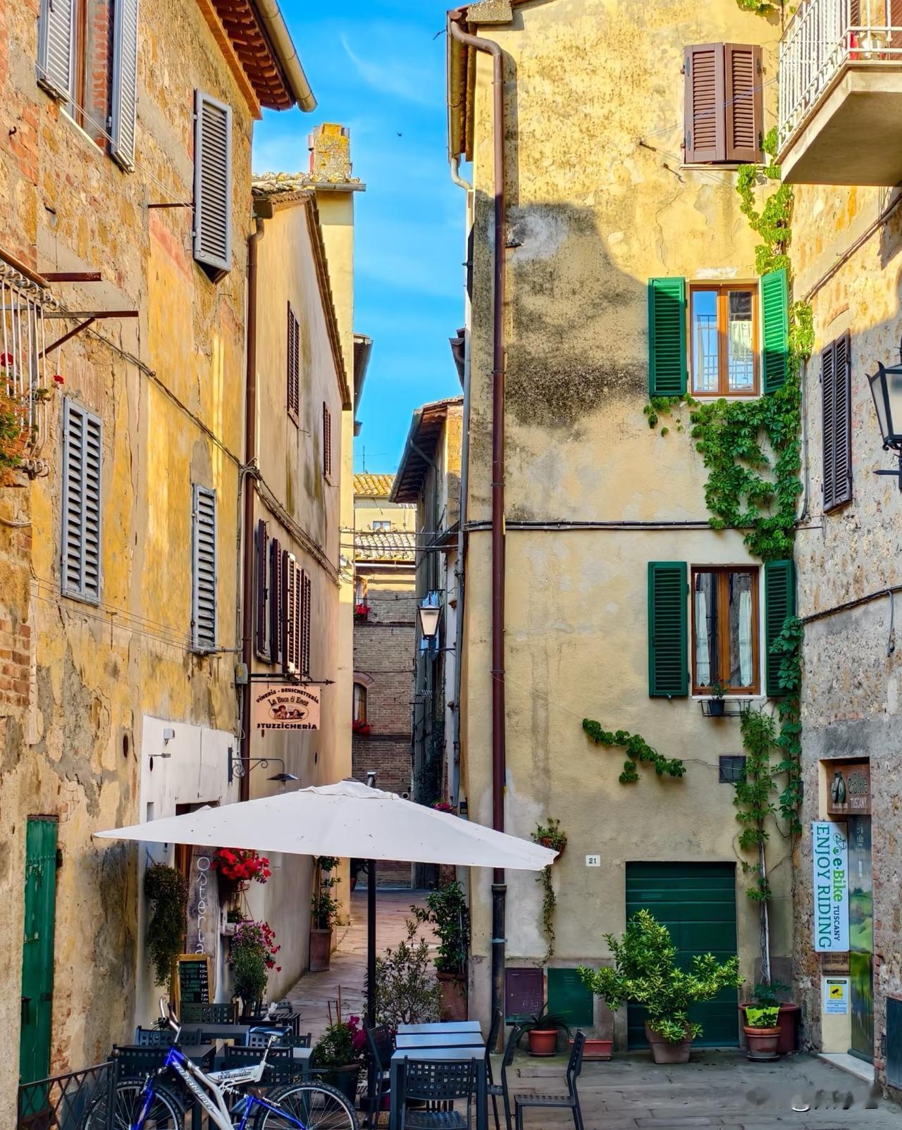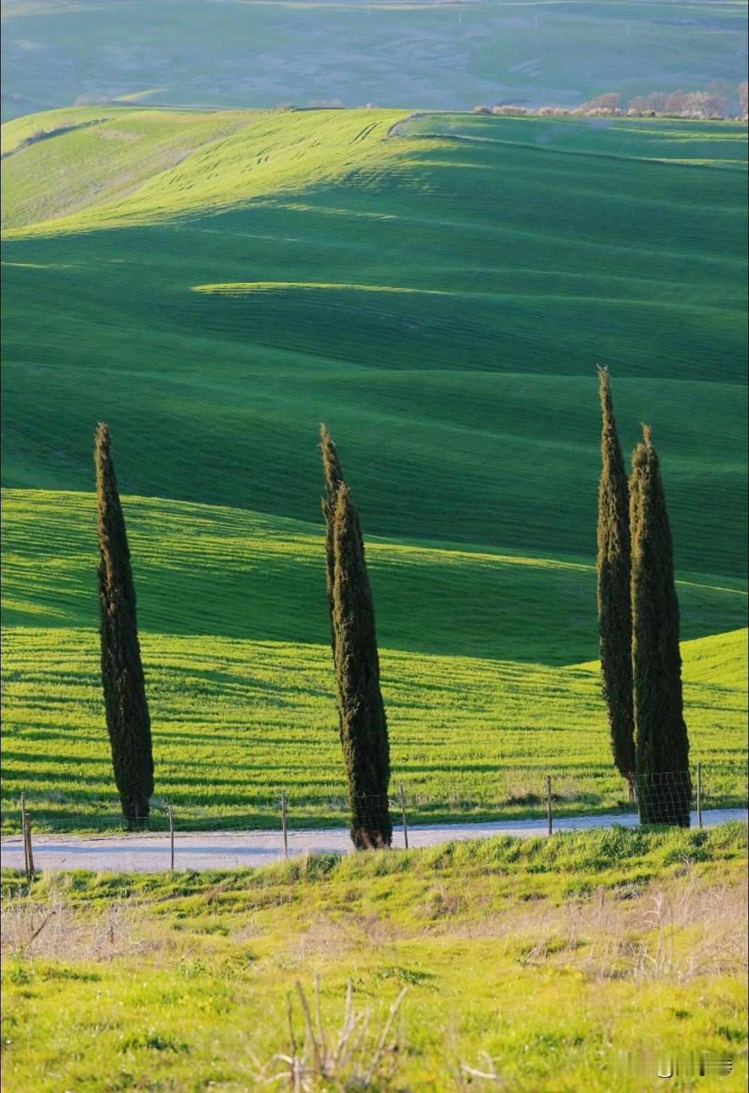 托斯卡纳。其实应该叫托斯卡纳的生活。丝绒一样的丘陵草地,蜿蜒的只能一辆通过的小路,路边是三层楼高的铅笔松,不独特,但是挺唯一。然后就是驼色的石头建筑,有教堂,有农舍,还有花瓦、黄墙和葡萄园。这些基本元素构成了托斯卡纳,也构成了意大利的原乡生活。