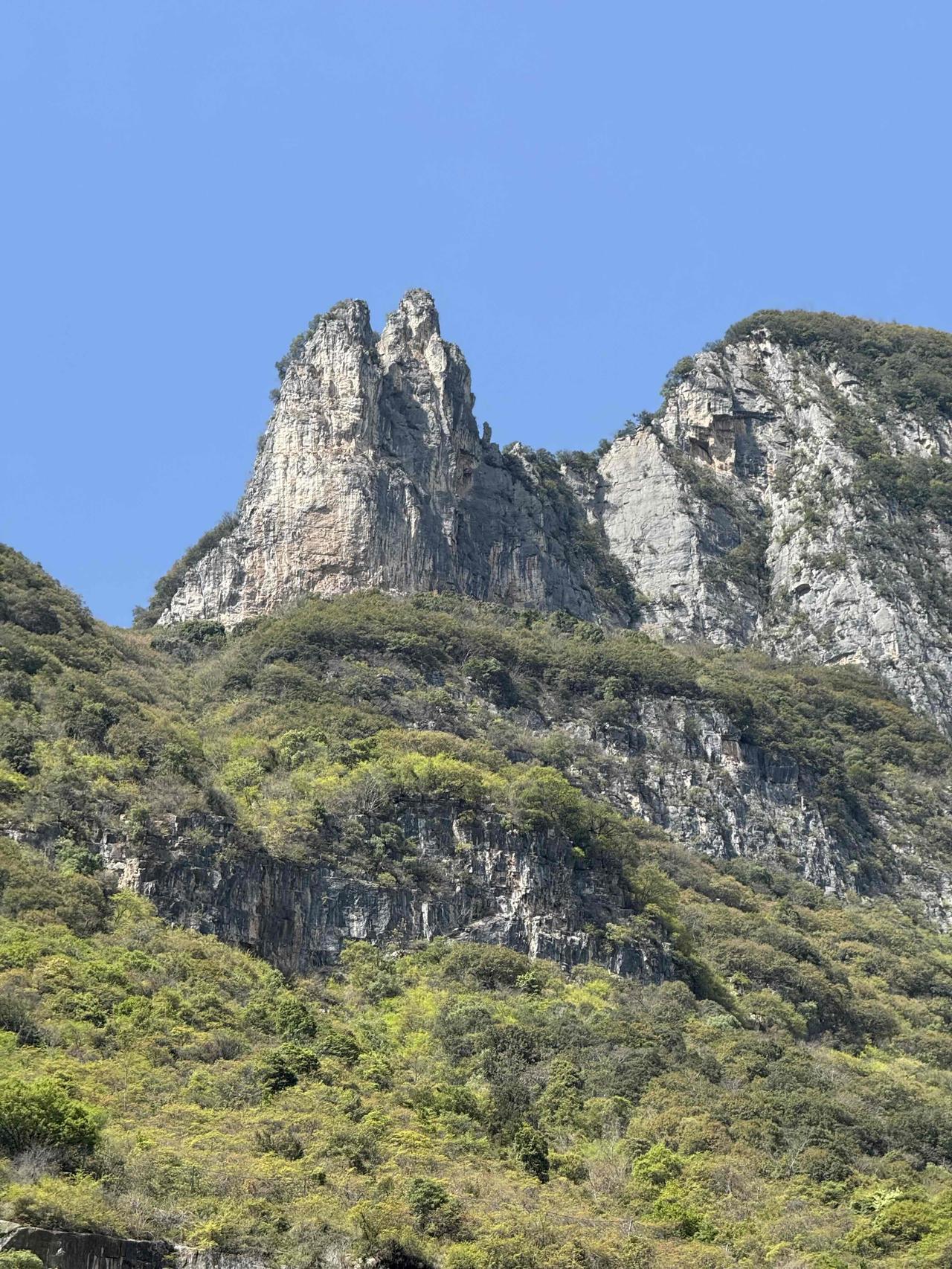 神女峰在不经意间出现,峥嵘的山巅,一位同船游客为我指认,说哪块石头是“神女”。一瞬间以为是一个真人,这也太像了,完全不用想象力,而且几千年来,我与楚怀王,杜甫,苏轼见到的是同一人。她才是“千古一人”。