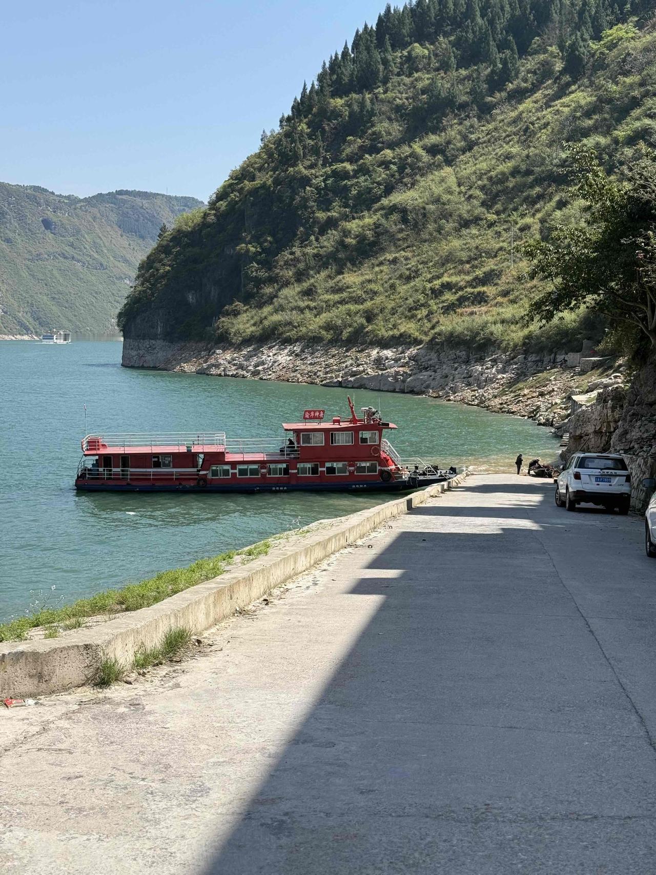 3、我们坐上小红船后,小红船并非直接启程到巫山,而是在一个叫鳊鱼溪的渡口停靠,直至下午14点,才开始正式返程。