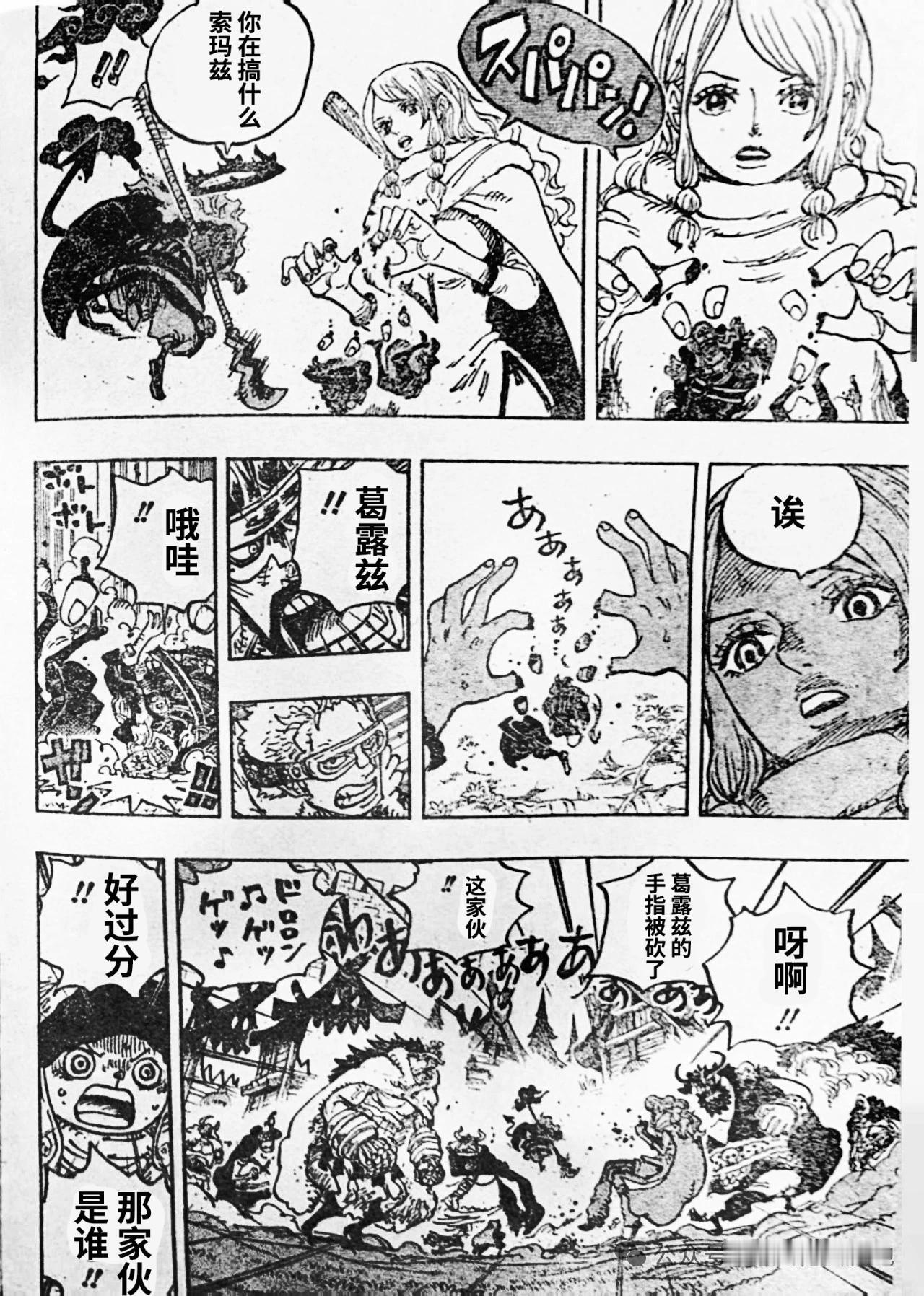 索隆一个照面被打伤,山治也是被一脚踢飞。