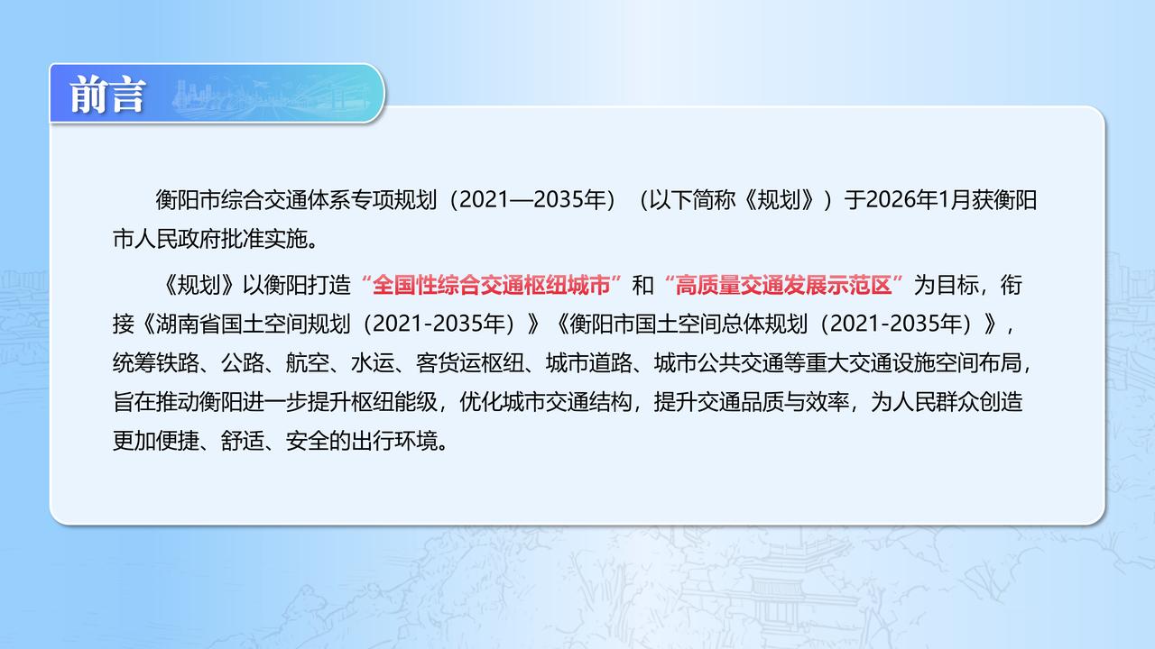 3月18日,衡阳市综合交通体系专项规划(2021—2035年)批后公告发布,全文如下