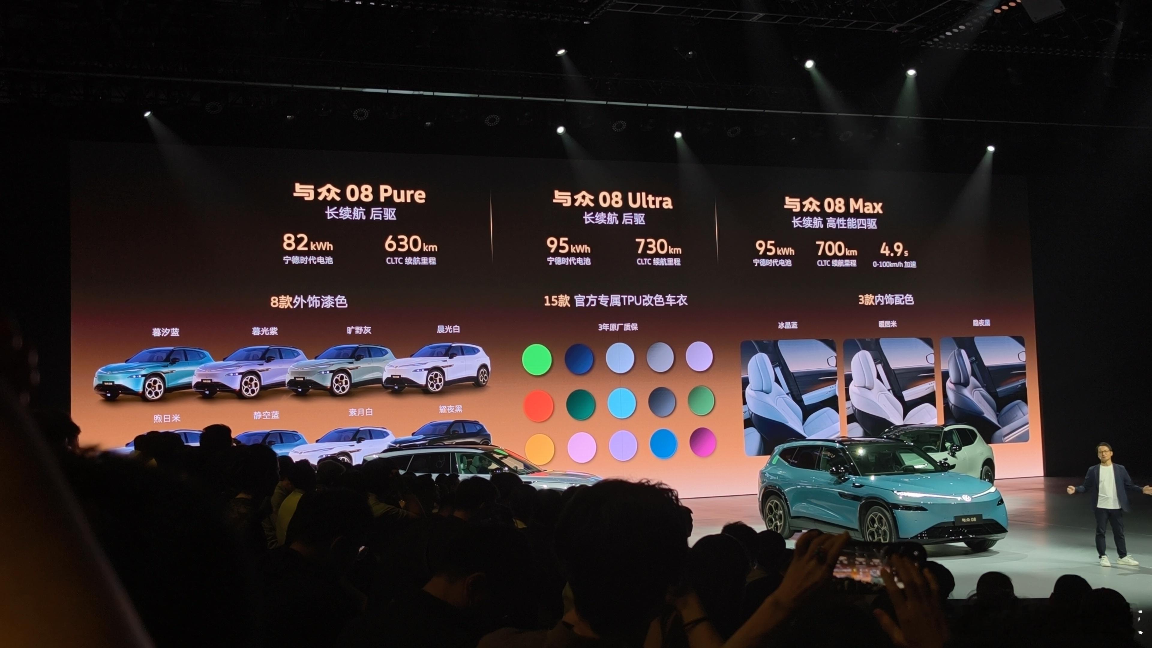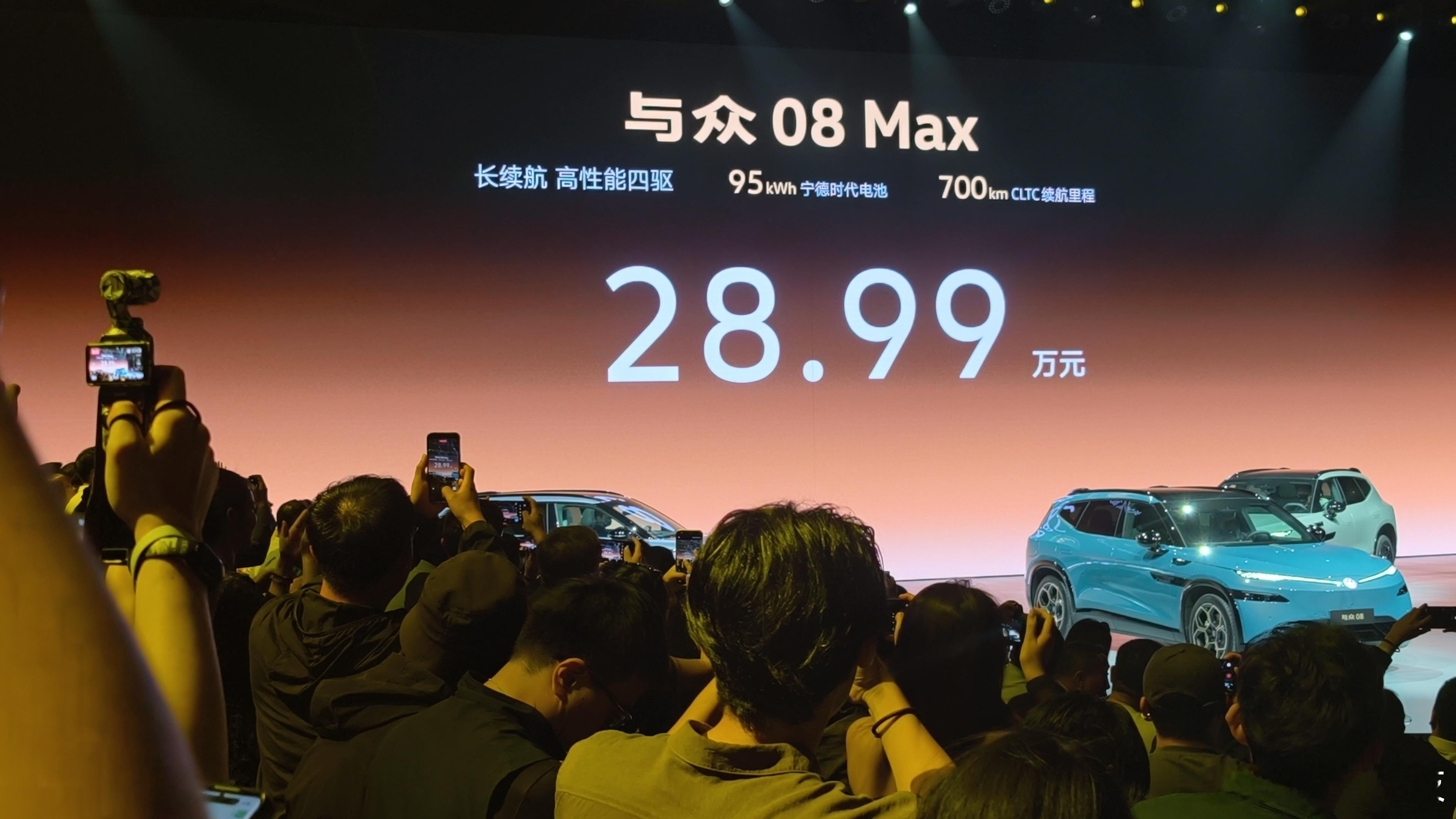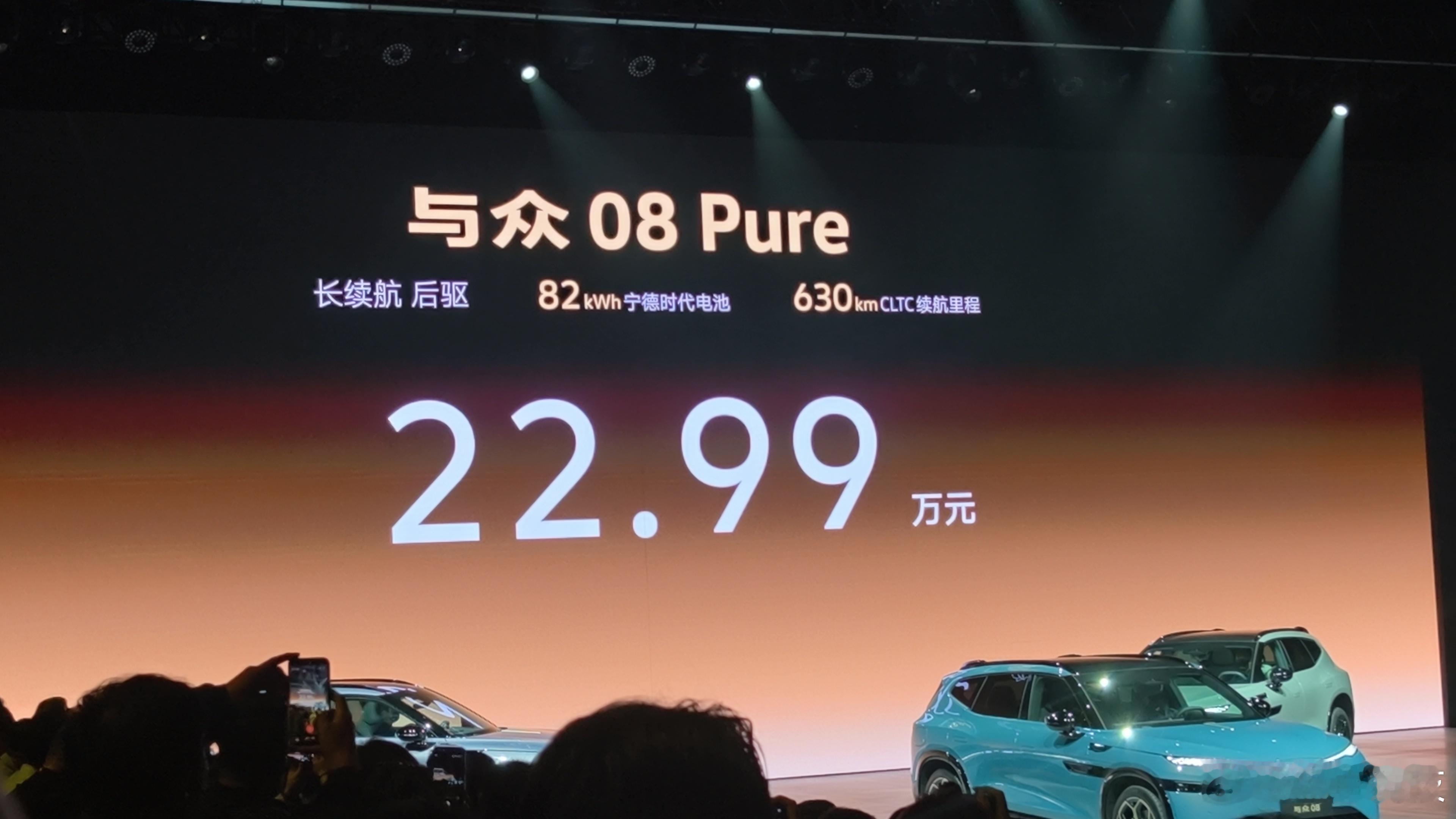 与众08 Pure 长续航后驱:22.99万元与众08 Ultra 长续航后驱:24.99万元与众08 Max 长续航高性能四驱:28.99万元