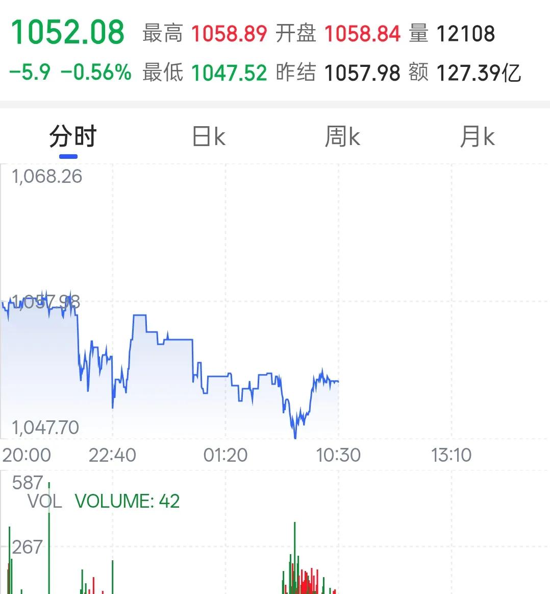 今天是2026年的4月17日,星期五,现在是上午10点钟。今天开盘黄金价格直接跌!跌!跌!现在国际金价是1051元每克,最高开1058元每克,最低开1047元每克,开盘是1058元每克,昨结是1057元每克,今天星期五,明天周末,国内停盘休市。今天晚上,黄金价格的收盘数据会不会继续下跌?我时刻关注黄金价格的走向,第一时间发布给友友们。