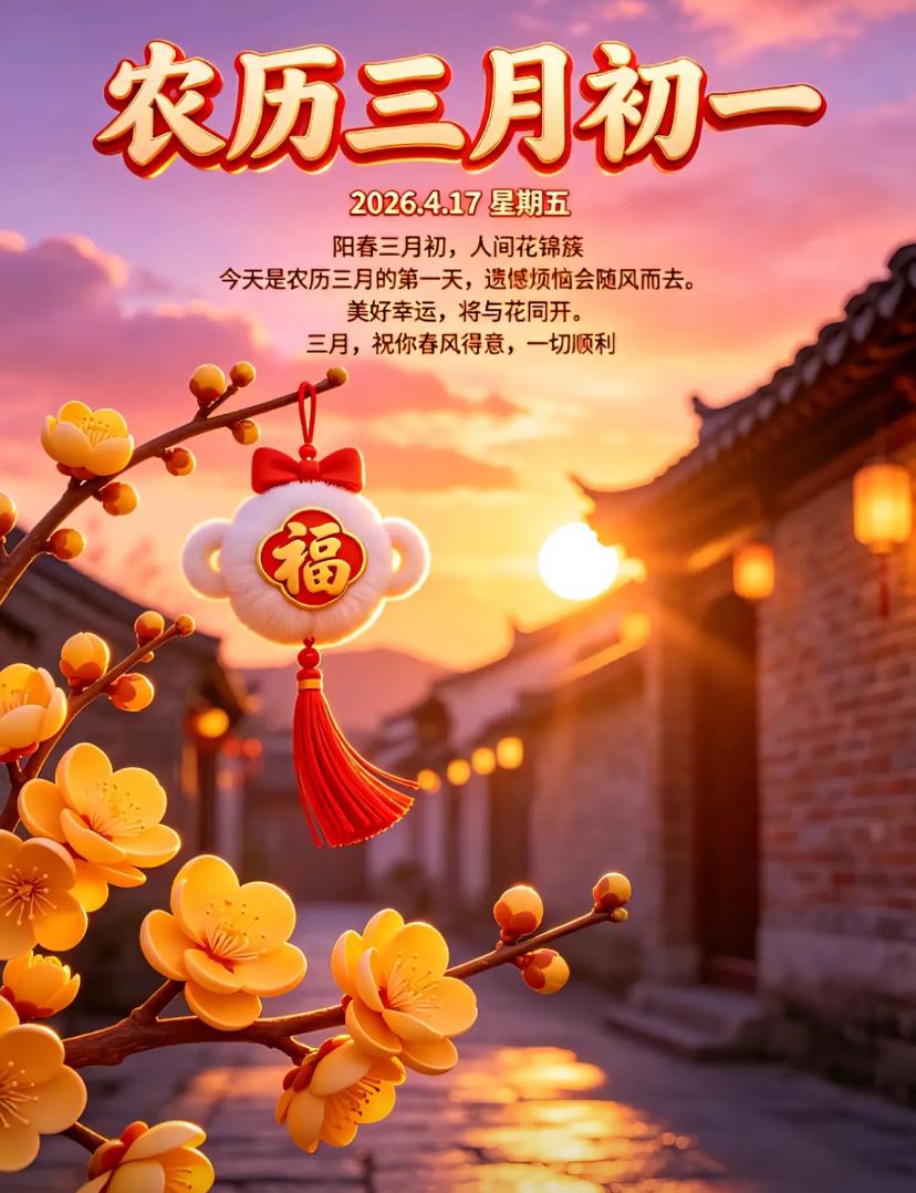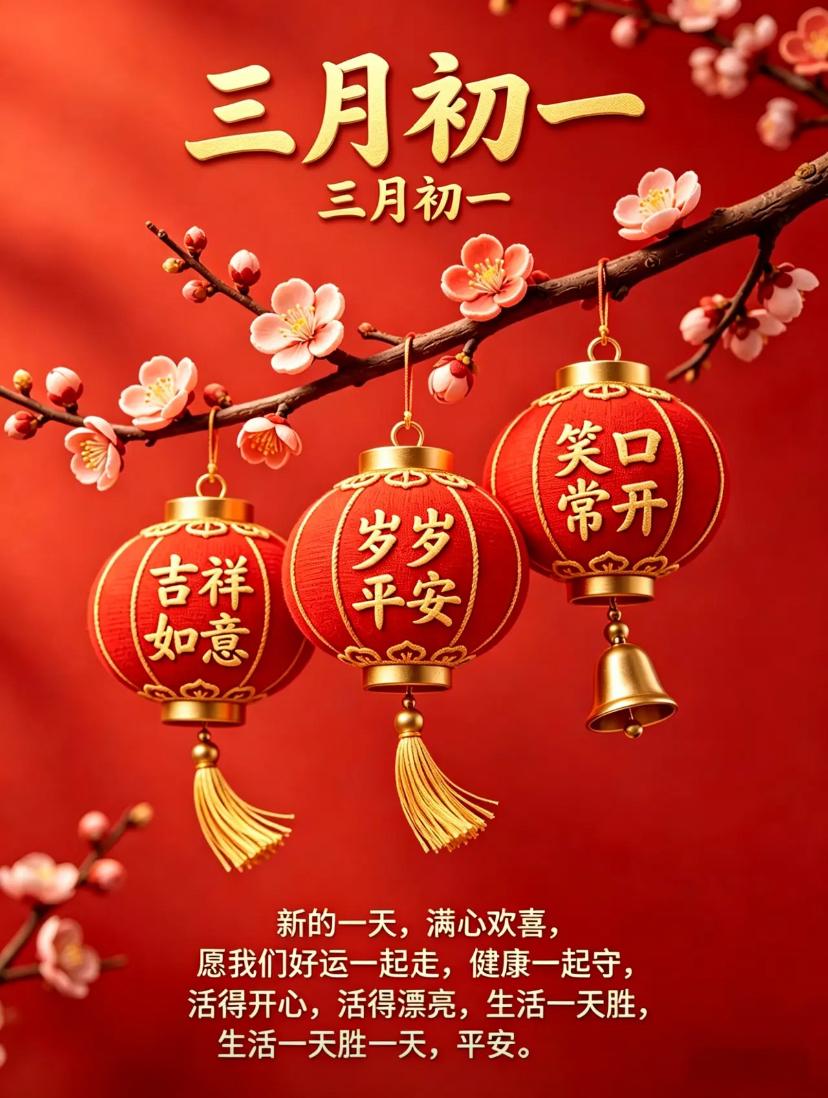 🌿💐农历三月首日,春风拂繁花。携一缕清晨暖阳,将温柔与期许藏进日常,吹散过往纷扰,拥抱崭新时光。愿你三月眉眼带笑,心事舒展,不慌不忙,生活明朗,心情如诗,日子如画,一生福气,精神饱满,迎来全新的安宁。愿你在这新启的三月,如你所愿,风有信,花有期,心有暖阳。揽一缕晨光,守一份淡然,三餐四季欢喜相伴,爱与幸福都在来的路上,愿你事事顺心如意。