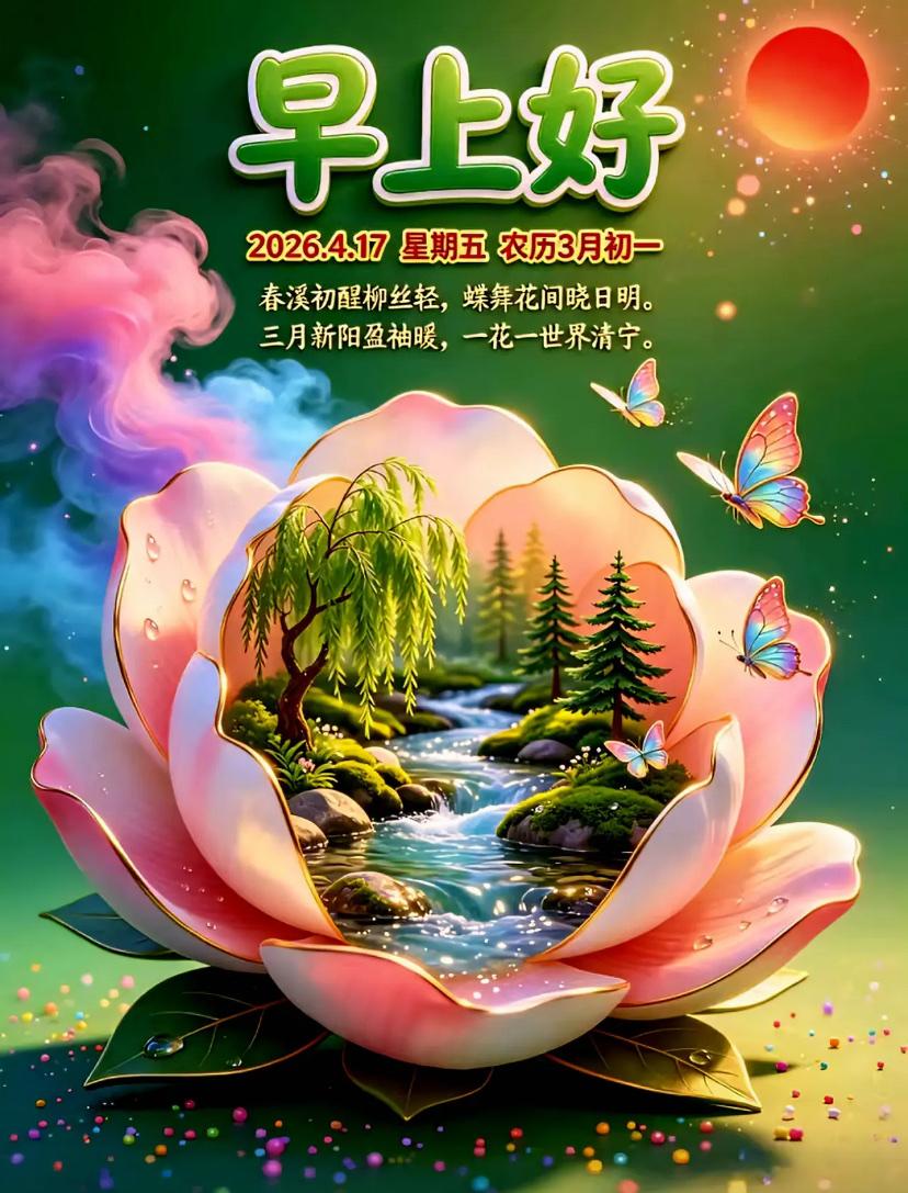 🌺☘️2026./4.17.周五春是祝福☘️🌺 🌿🌅朝阳初升,新晨启