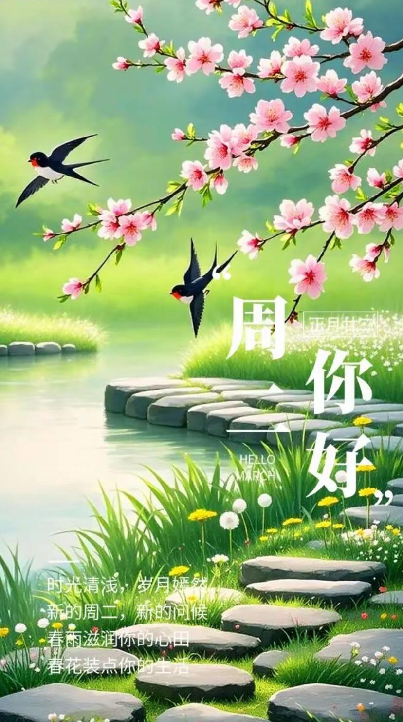 🌿🌷人生一程山河漫行,不求繁花惊世,但求岁岁平安相伴。揣着温柔期许奔赴前路,好运随行不辍,福气缓缓生根,步履步步顺遂。愿琐碎不扰从容心境,奔波仍有热忱。四季轮回,岁月流转,每一个寻常日子,都藏着独有的诗意与美好,余生安稳向阳。周二愉快!🌿🌷