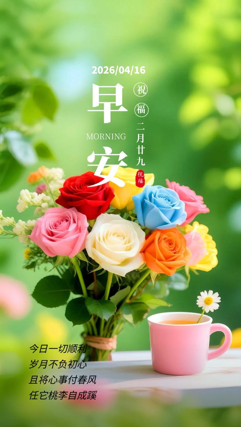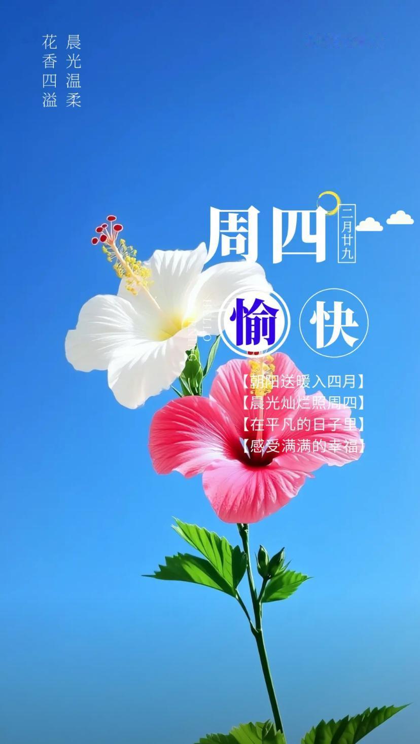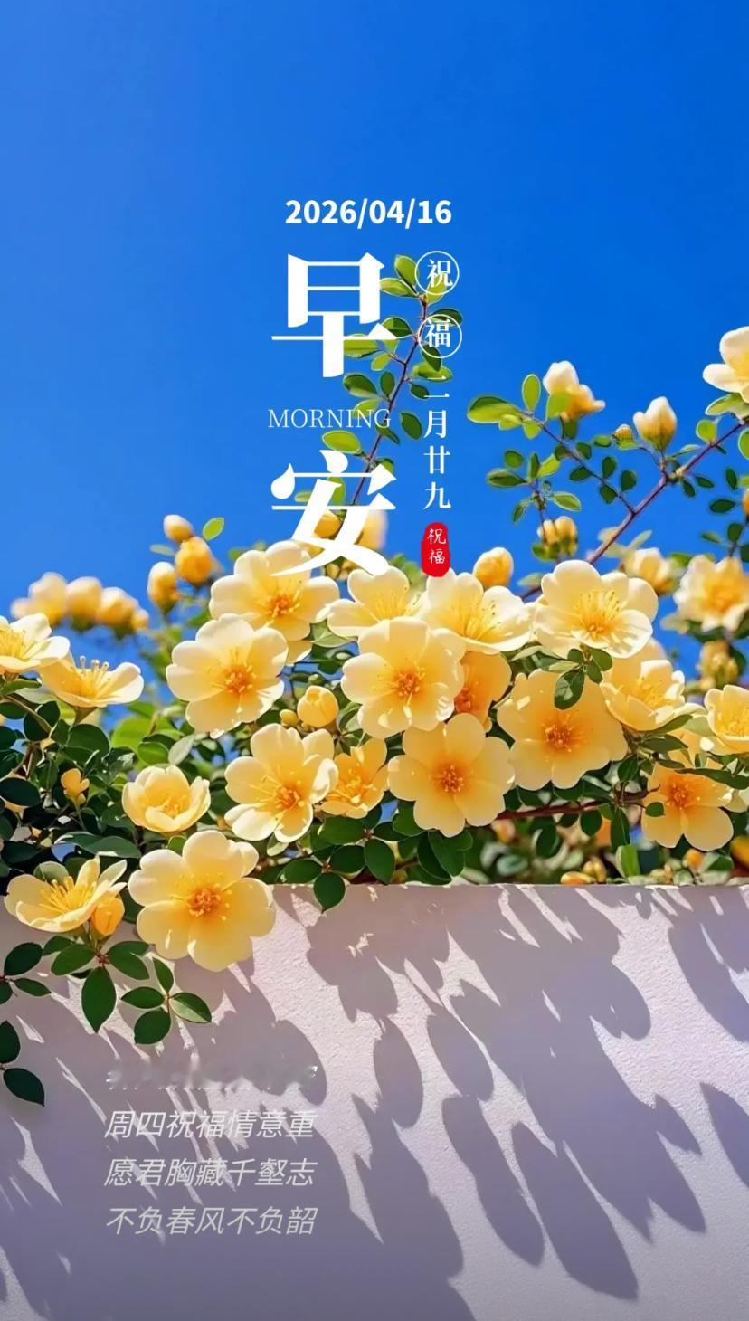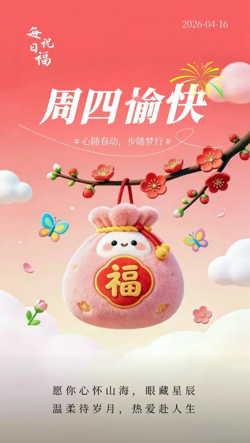 🌿🌷日子因相逢而美好,问候因牵挂而温暖,静下心稳步前行,岁月自会赠予惊喜。愿你始终心怀热爱,目光明亮,诸事顺遂。人生旅途,有繁花亦有风雨,从容走过便自有韵味;岁月悠悠,守一颗平常心,自能收获安然。即便前路有坎坷,也始终心向暖阳,笑对风雨。愿你于四月从容启程,一路有春暖花开相伴,岁岁平安喜乐。周四愉快!🌿🌷
