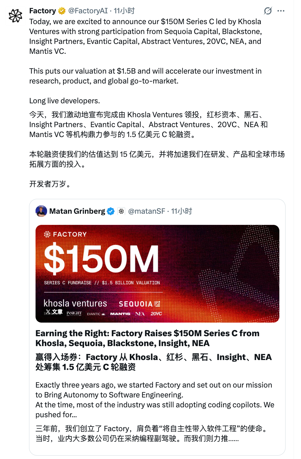 Factory 宣布完成 1.5 亿美元 C 轮融,估值 15 亿美元