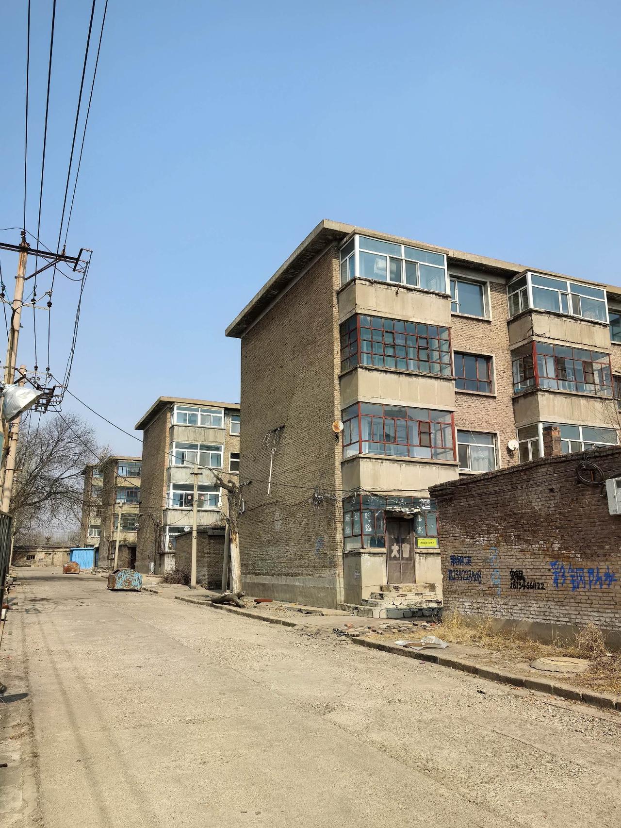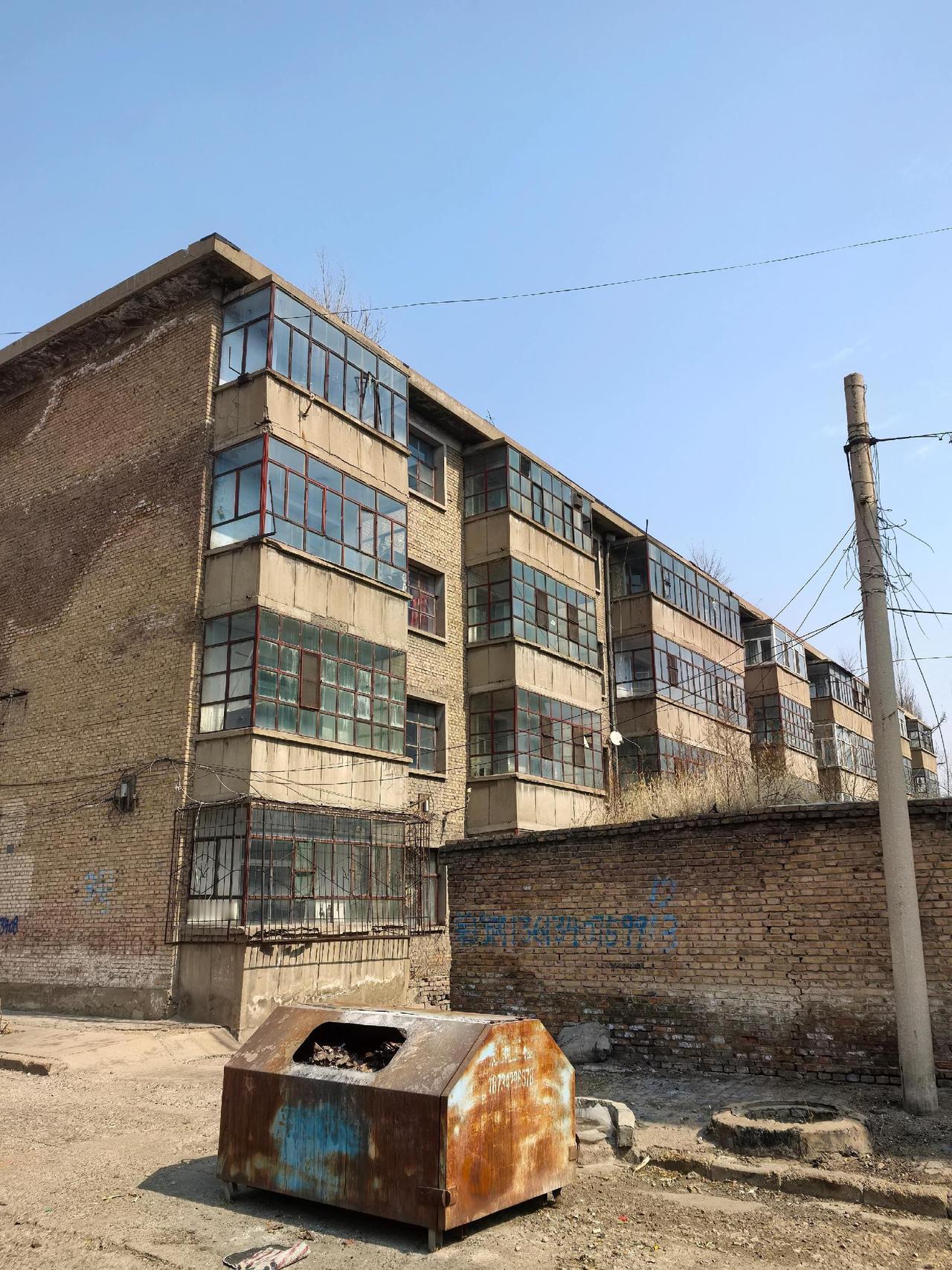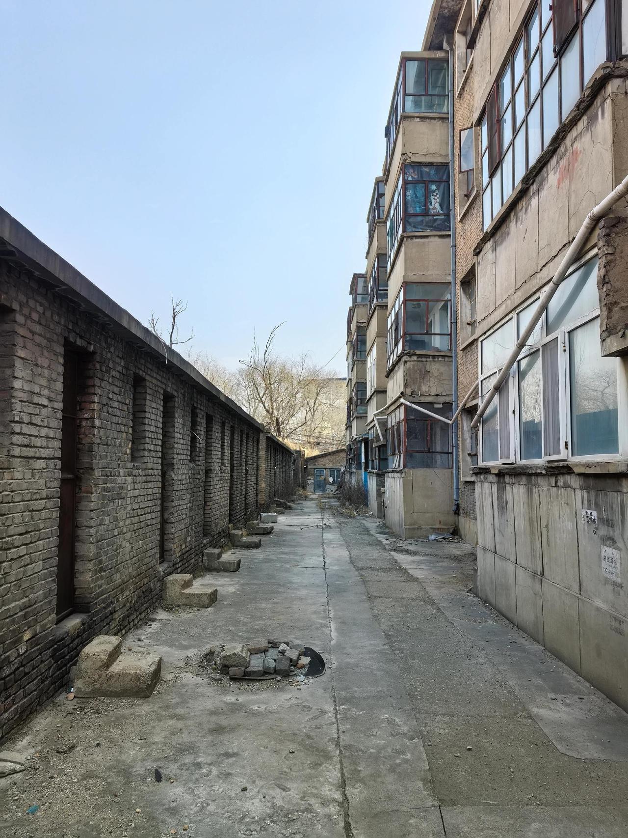 这里是大同肉联加工厂家属院里的楼房。人都走光了,只剩两三户了。西北风轻轻吹过,门