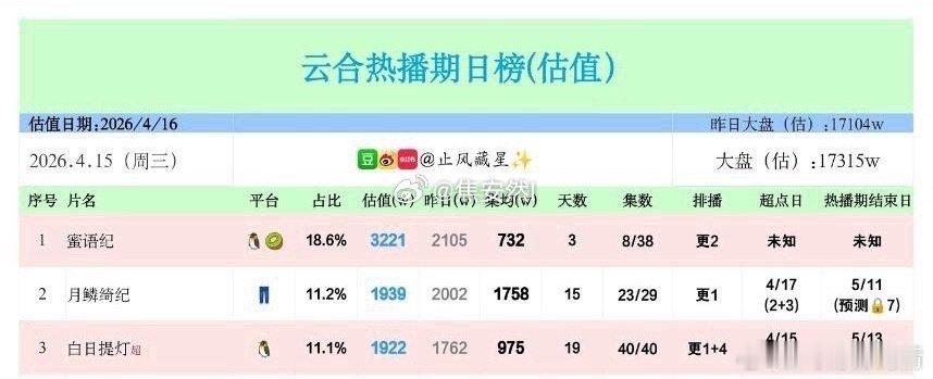 月鳞绮纪大结局云合集均1758,白日提灯集均975,热巴和鞠婧祎古偶对打,差的太