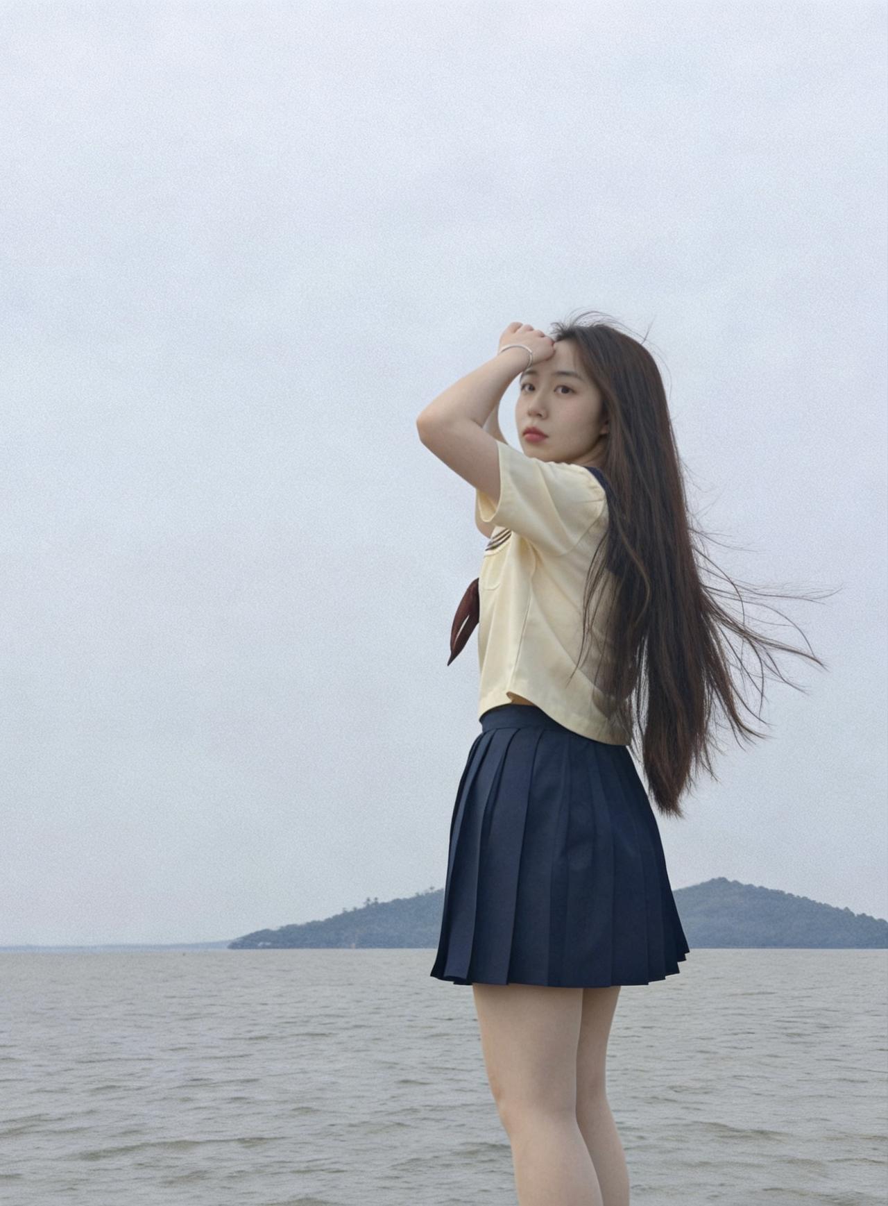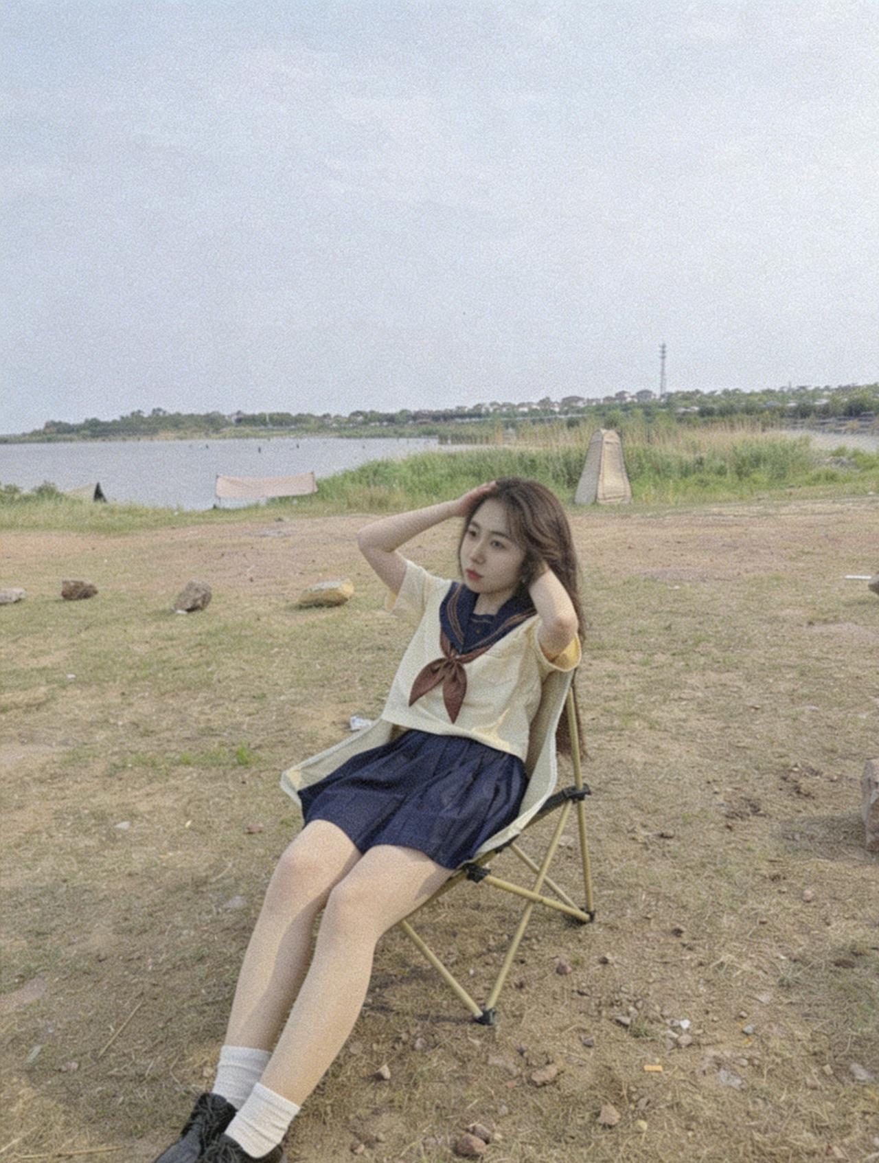 春天的风终于吹到了湖边,换上清爽的JK制服赴一场春日之约。坐在露营椅上,米白上衣配藏青百褶裙,被湖风揉得软乎乎的;抬手拨弄被风吹乱的长发,发梢和领结一起晃出温柔的弧度。阴天的湖面没有刺眼的阳光,只有带着水汽的风,把裙摆和发丝都吹得轻轻扬起。没有刻意摆拍,只是随手记录下和春天撞个满怀的瞬间,把少女感和松弛感都藏进湖岸的风里,成了独属于春日的温柔注脚。