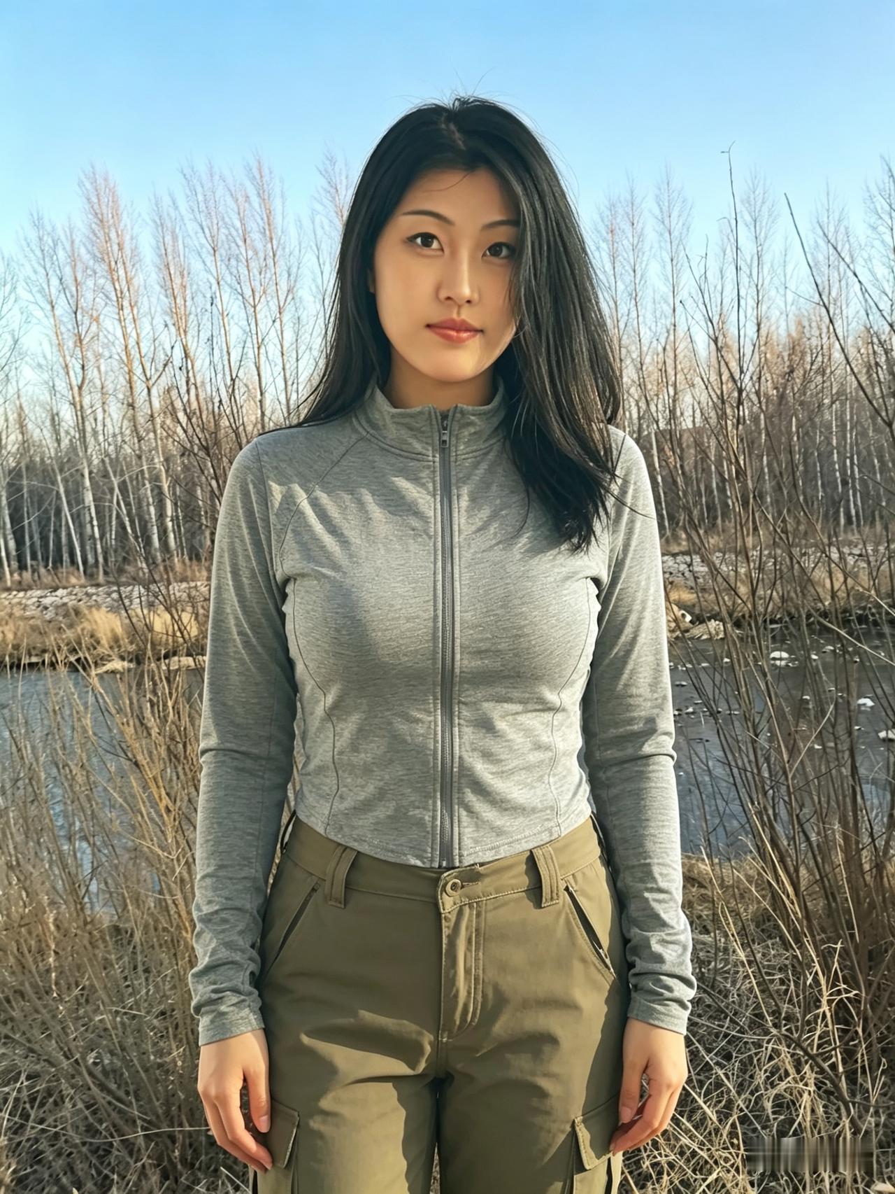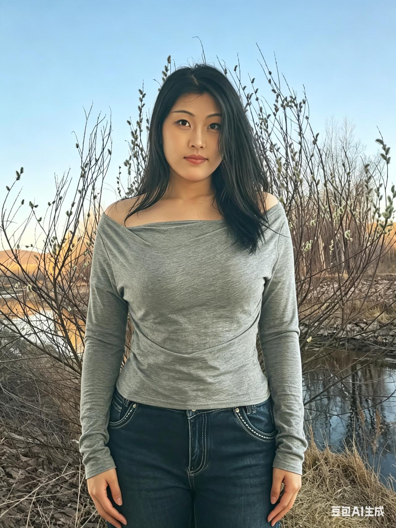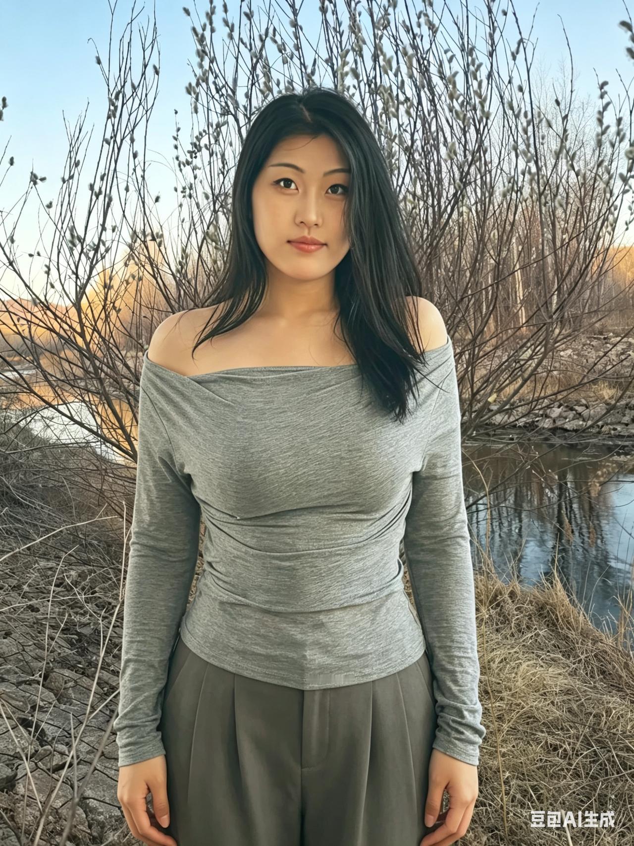 银柳初芽缀野津,清眸含韵自天真。 闲庭信步烟光里,不施粉黛也动人。