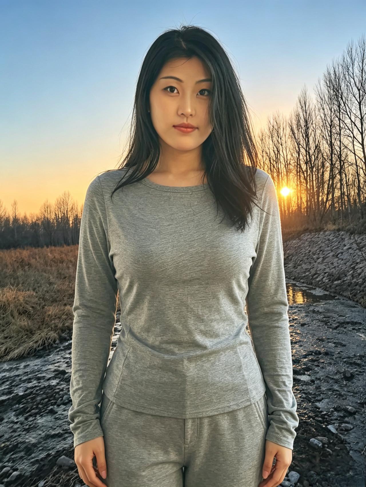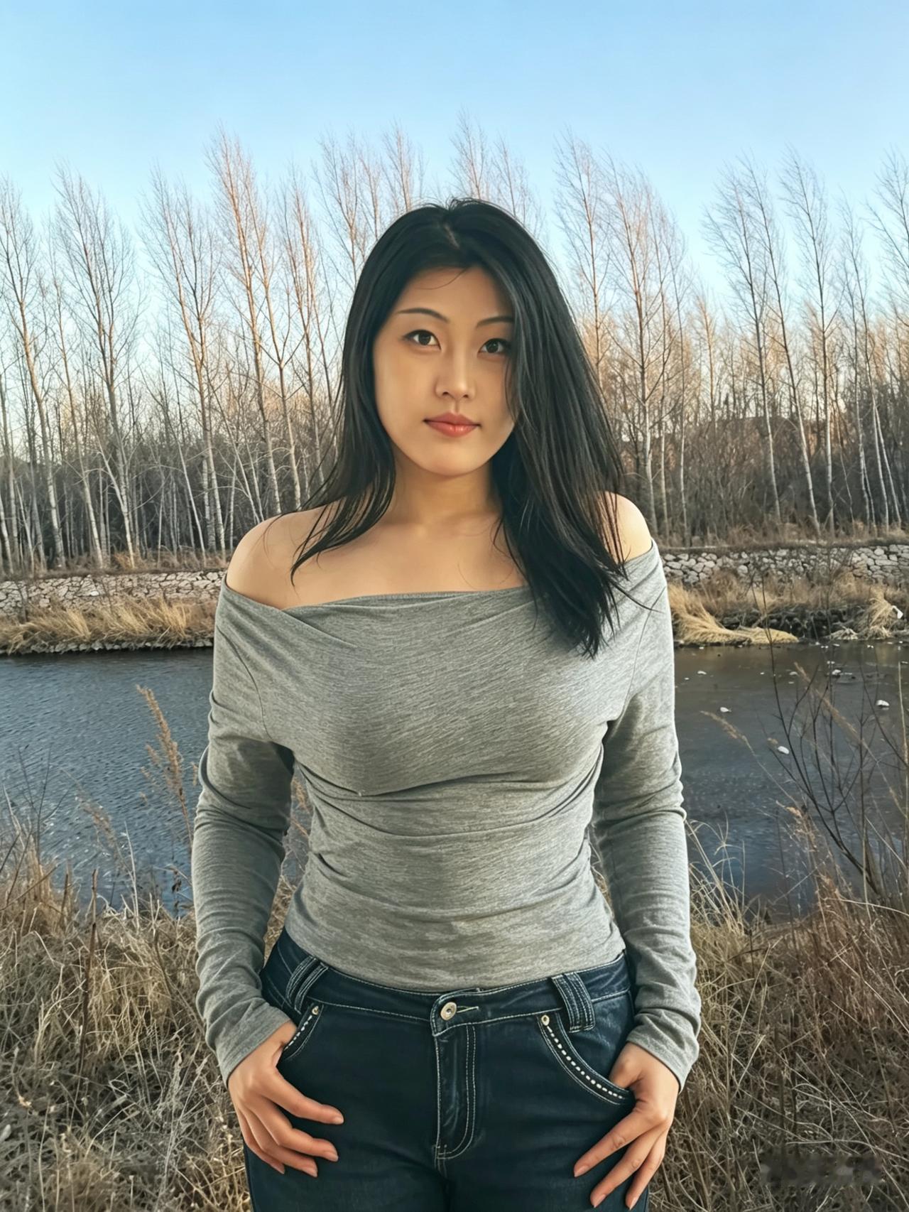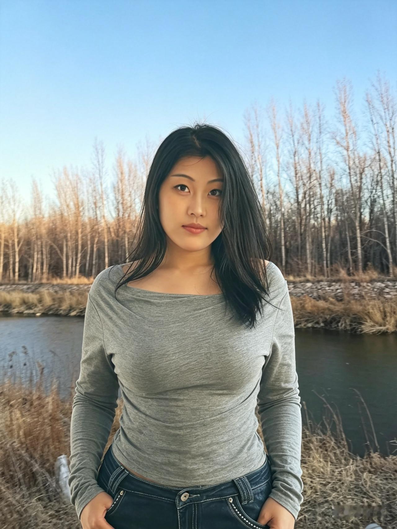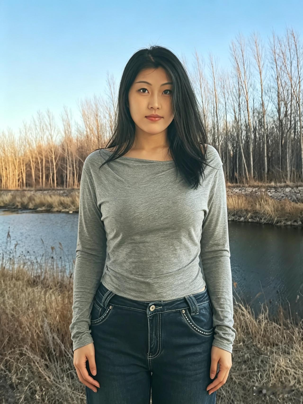 银柳初芽缀野津,清眸含韵自天真。 闲庭信步烟光里,不施粉黛也动人。