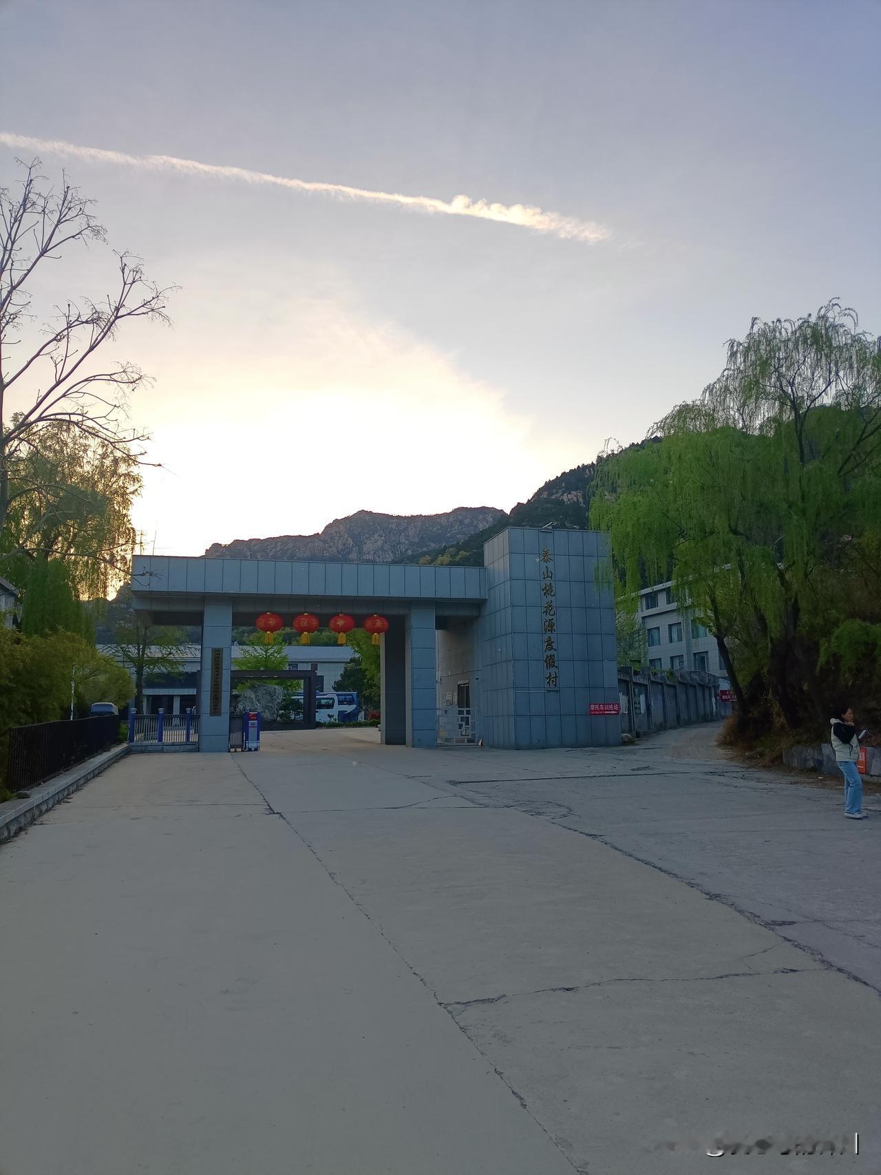 出了宾馆抬头看,上面写着“桃花源度假村”,四面群山环绕。照了张照片,地理位置显示是泰安岱岳区。
